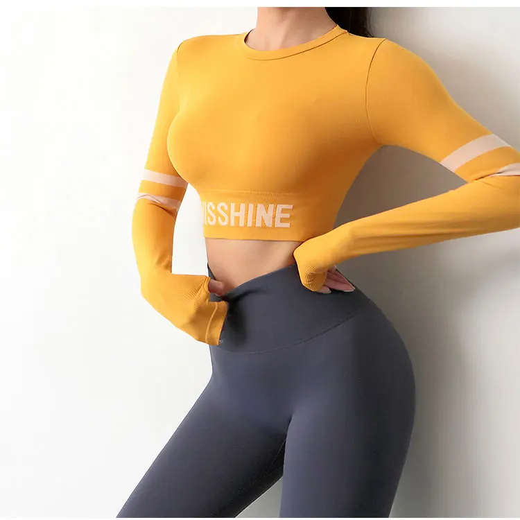Бесшовная рубашка для йоги, Спортивная рубашка на бретелях сзади, Женский кроп-Топ с длинным рукавом, женский спортивный топ для тренажерного зала, Женская Сексуальная рубашка для фитнеса и тренировок