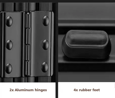 Double aluminum hinges give the extra protection to the case ,with water-proof seal bar ,keeping inside dry and clean even traveling in rainly days.