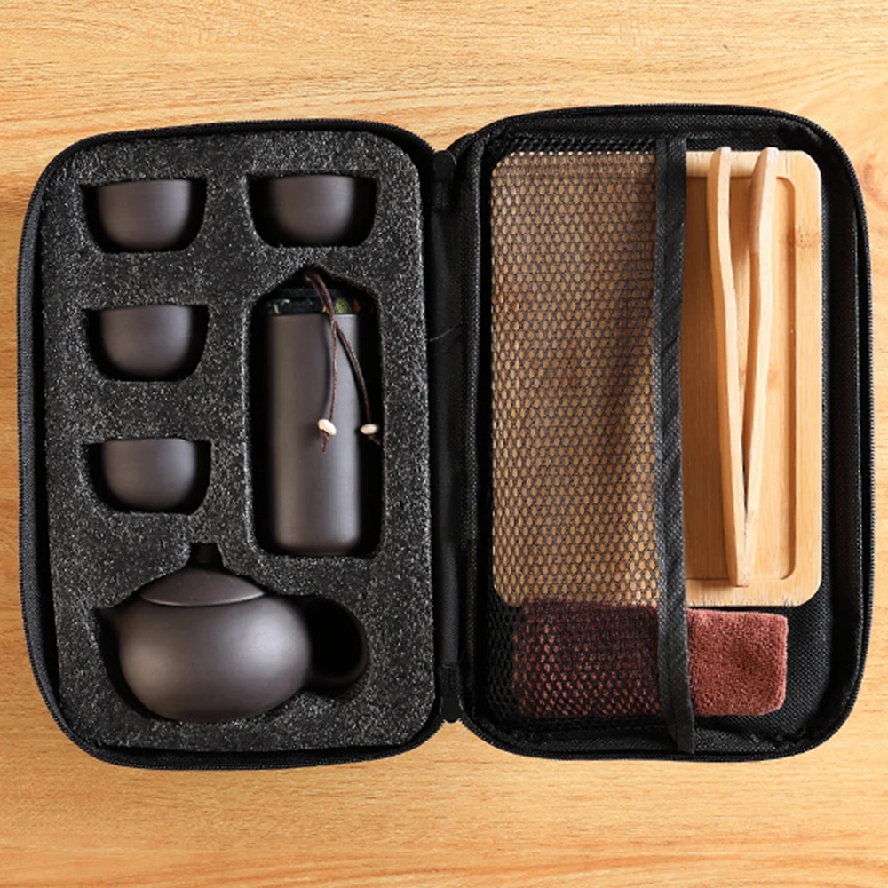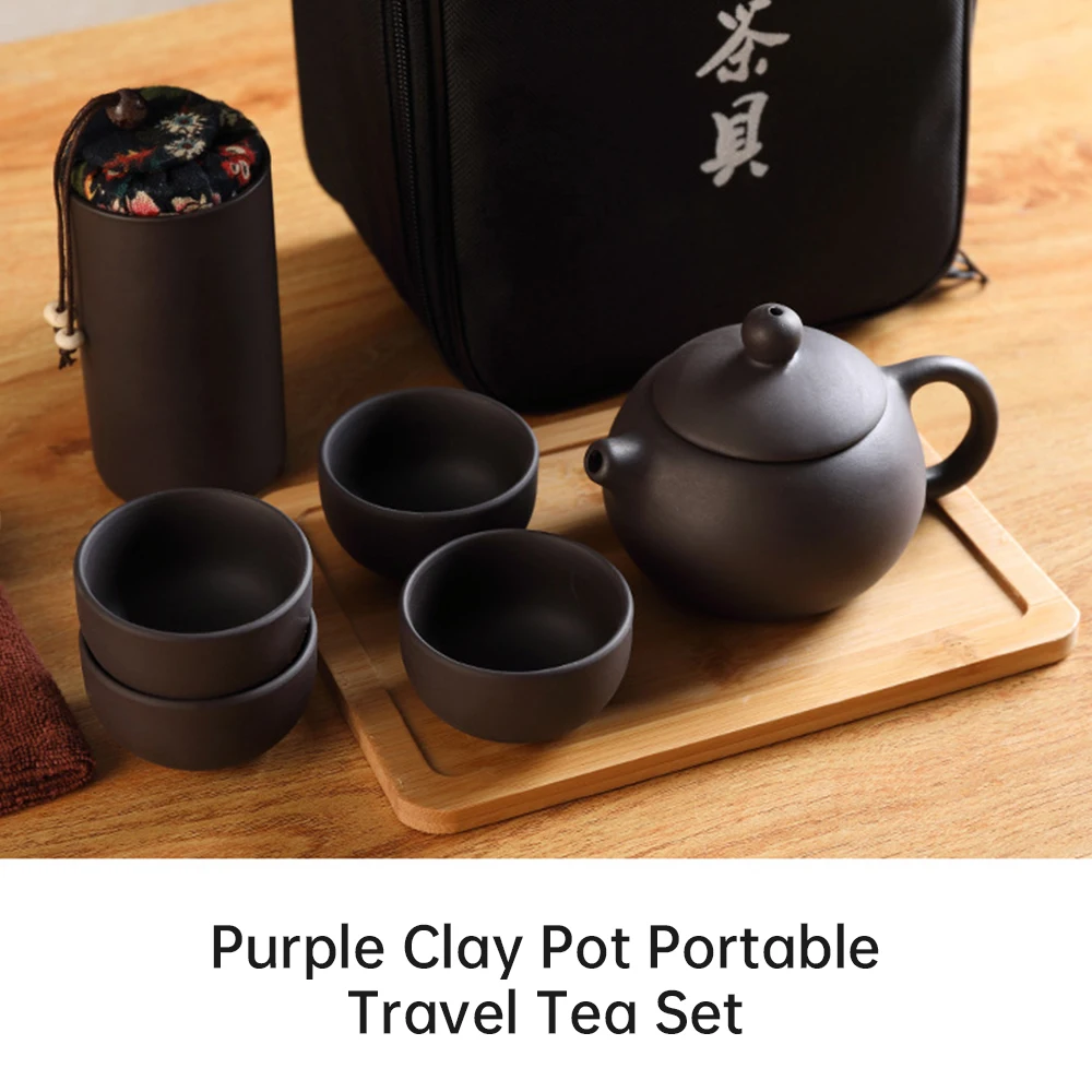 Название: фиолетовый глиняный горшок, портативный дорожный чайный набор, один горшок, четыре чашки
