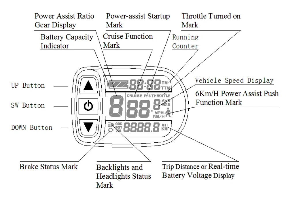 KT LCD 5 EBike LCD Измеритель для контроллеров серии KT. Подходит только для контроллеров серии KT. Не подходит для других контроллеров. -Этот разъем для демонстрации электрического велосипеда не является водонепроницаемым. Это 5-контактный водонепроницаемый разъем -Длина кабеля около 40 см -Рабочее напряжение: 24 В постоянного тока 36 в 48 в