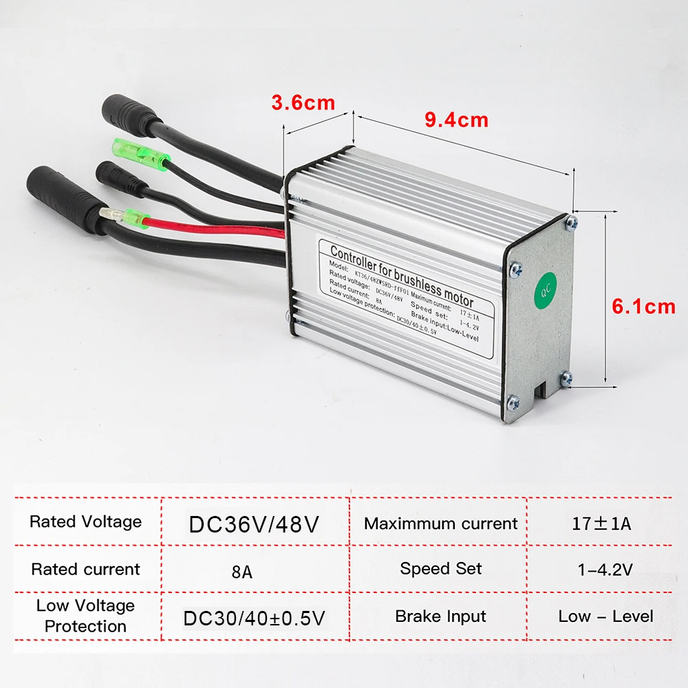 -Подходит для 250 Вт 350 Вт бесщеточный мотор-концентратор -Поддерживает только электродвигатели с датчиками -36 в 48 В Универсальный (поддерживает два напряжения одновременно) -Квадратный волновой контроллер (высокая эффективность) -Поддержка дисплея ebike KT LCD4 KT LCD5 или LCD3 LCD8. -Поддержка 36 В или 48 В управления освещением 1. Mosfet: 6 mosfet 2. Рабочее напряжение: 36 В или 48 В постоянного тока 3. Номинальный ток: 8А 4. Защита от низкого напряжения Защита: DC30/40 ± 0,5 V 5. Максимальный ток: 17 ± 1 А 6. Скорость окружающая Обстановка: 1-4,2 V 7. Размер: 94*61*36 мм -Соединитель для двигателя (9-контактный разъем Julet переходник с внутренней резьбой) -Основной кабель: 8-pin Julet водонепроницаемый разъем (подходит для Julet1T4 водонепроницаемый коннектор для кабеля). -Кабель аккумулятора (пуля) -Датчик гидроусилителя рулевого управления разъем: 3-переходник с внутренней резьбой (Julet)