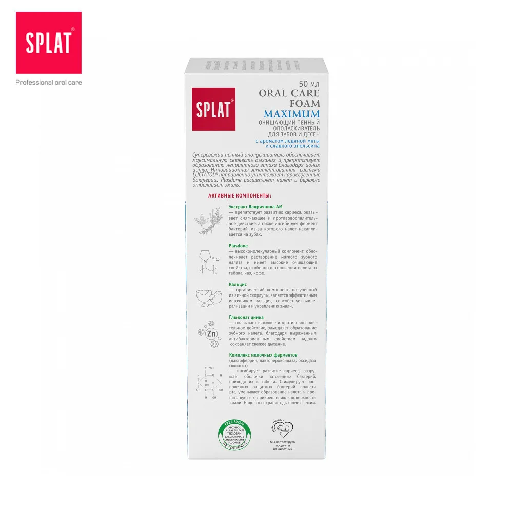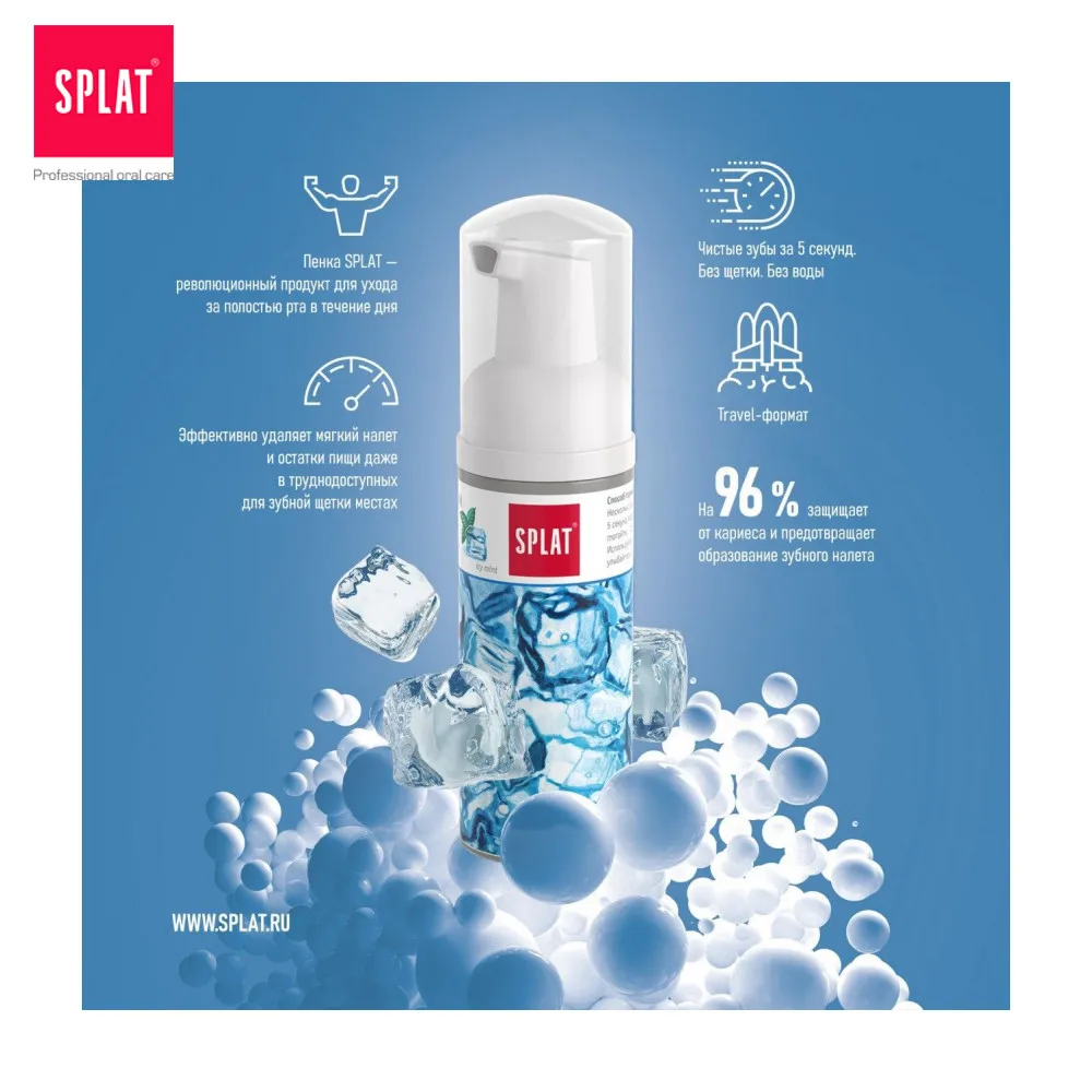 Способ применения: несколько раз нажмите на дозатор и в течение 5 секунд подержите пену во рту. Не глотайте. Сплюньте, не споласкивая водой.