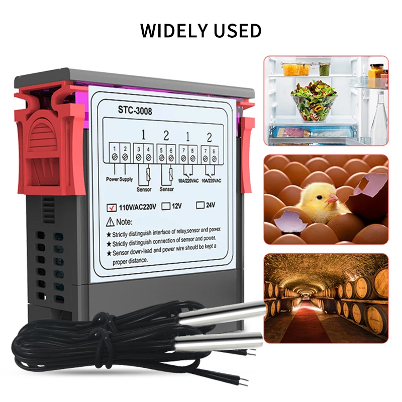 Двойной цифровой инкубатор термостат регулятор температуры STC-3008 Интеллектуальный два реле выход Отопление охлаждение терморегулятор