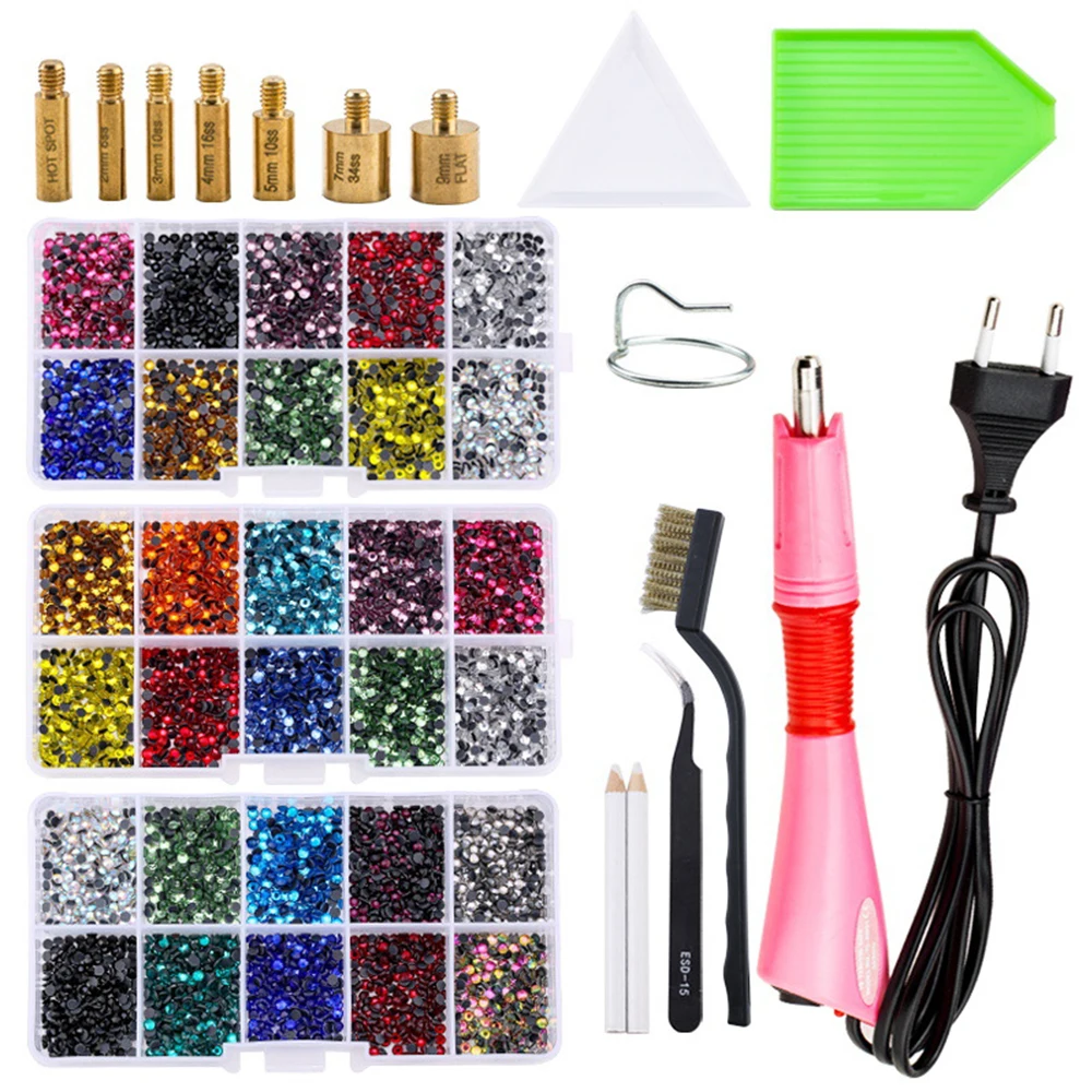 Этот диспенсер для термостата оснащен 7 Наконечниками: 6ss (3 мм), 10ss (2 мм), hot spot, 16ss (4 мм), 20ss (5 мм), 34ss (7 мм), плоская поверхность (9 мм), и этот диспенсер набор оснащен 2000 шт 10ss (2 мм) Стразы Strass. Подходит для различных размеров стразы