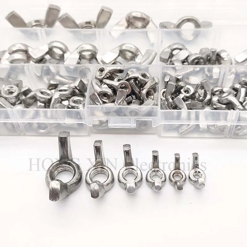 110 шт. 304 набор крылых гаек из нержавеющей стали Размеры: M3/M4/M5/M6/M8/M10 Материал: нержавеющая сталь 304