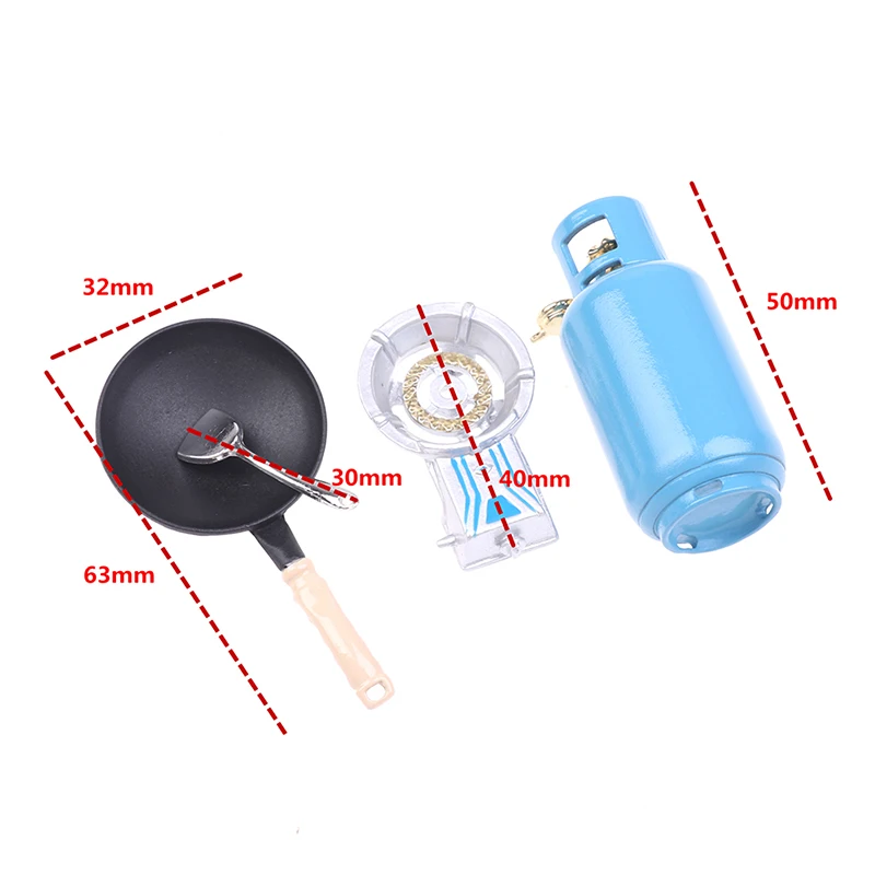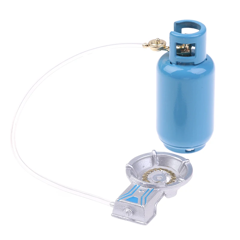 Поставляется с газовой плитой, газовым баком, кастрюлей и лопаткой с миниатюрным размером.