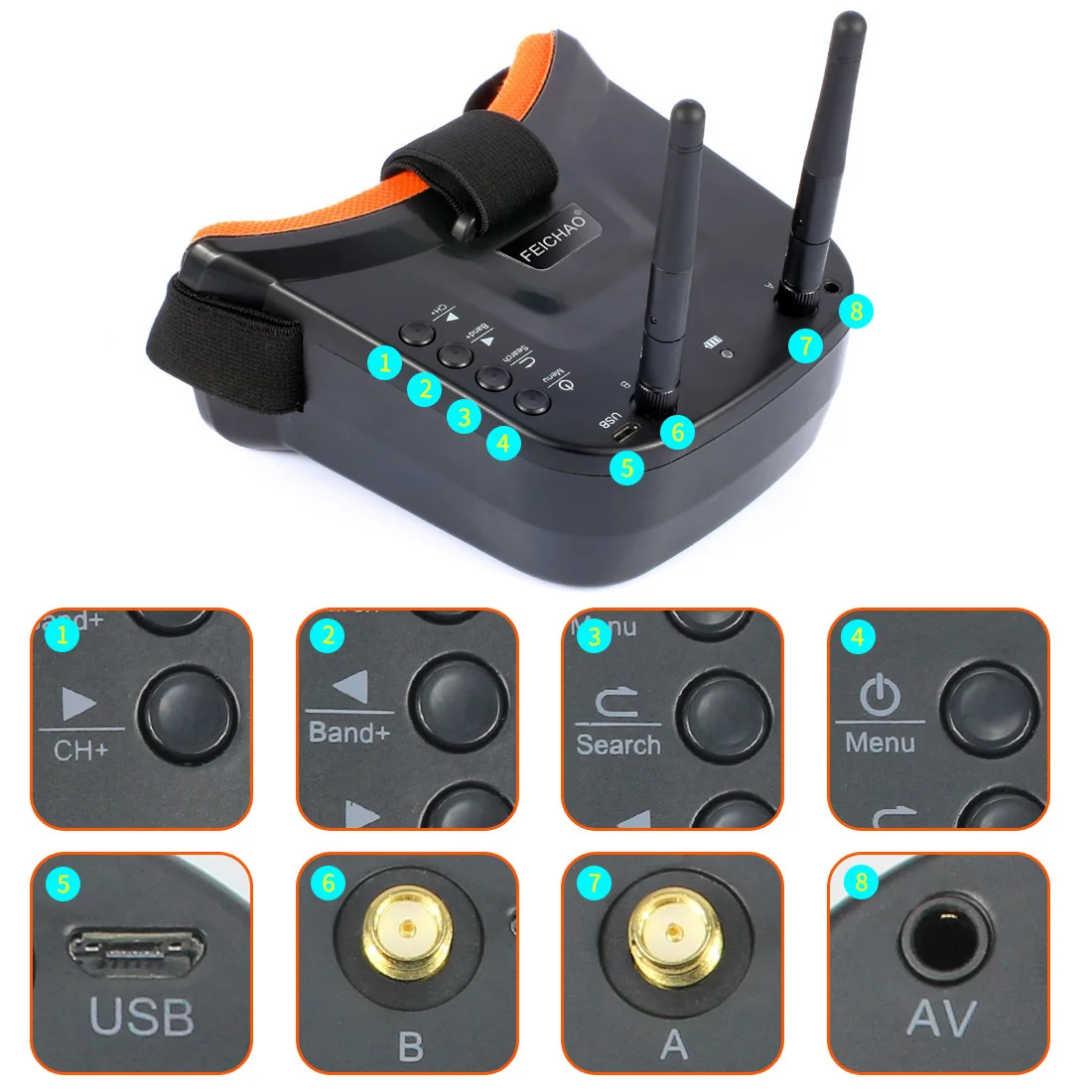 Очки FPV: 3-дюймовый дисплей с двойной антенной 480x320, 5,8G, 40 каналов, встроенный аккумулятор 3,7 в, 1200 мАч для модели гоночного дрона