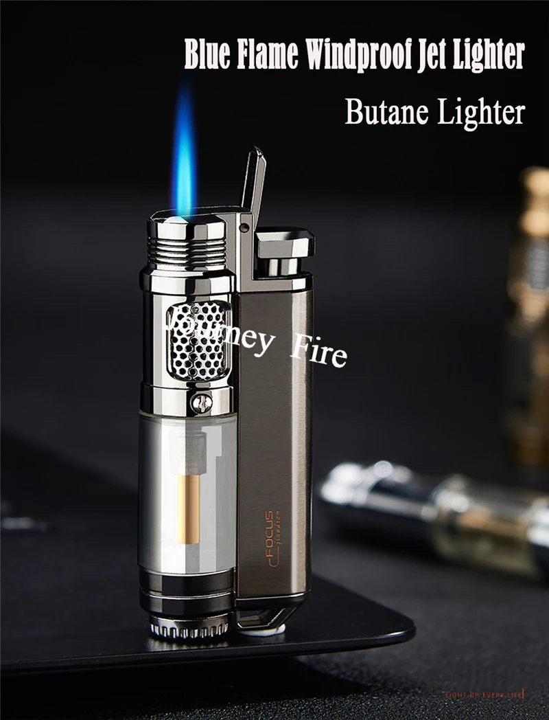 Фонарь, зажигалка для сигар, струйная Бутановая металлическая турбо зажигалка, портативный распылитель 1300 C, ветрозащитные трубные гаджеты для мужчин