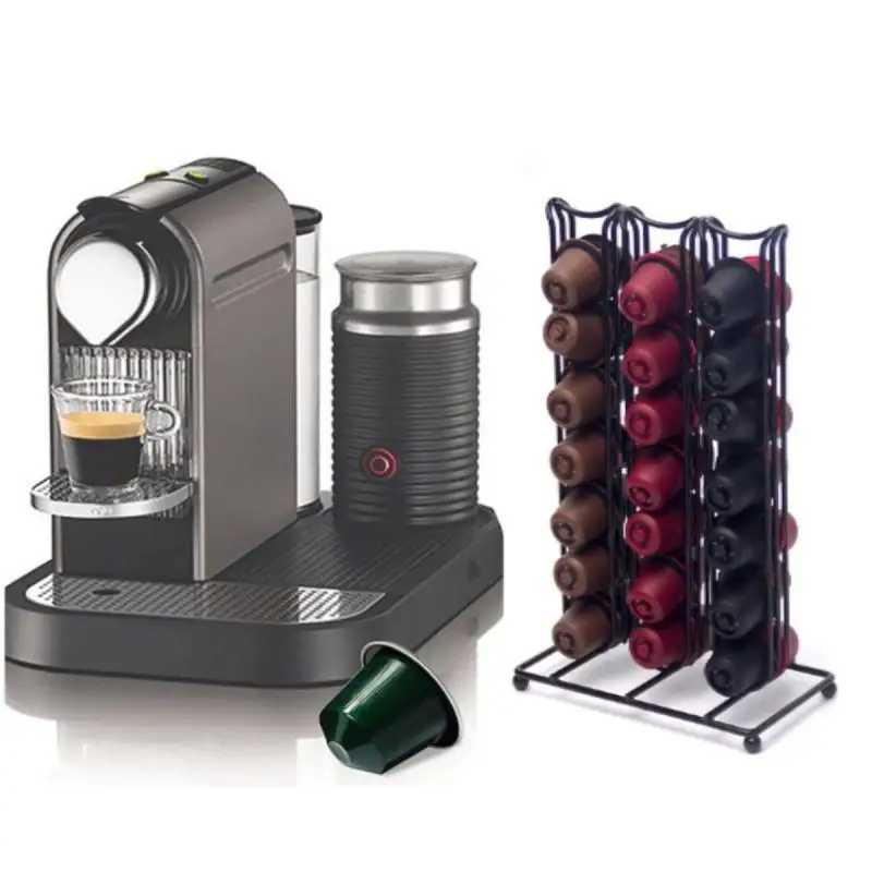 Держатель для кофейных капсул с 6 вертикальными отделениями в форме полосы может вместить 42 кофейных капсул. Большой емкости достаточно для удовлетворения потребностей большего количества людей или долгосрочных потребностей в кофе, что позволяет легко получить доступ к кофейным капсулам.