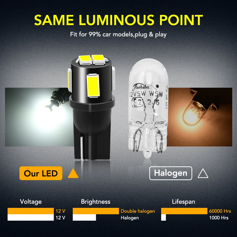 2 шт. T10 супер яркая светодиодная лампа