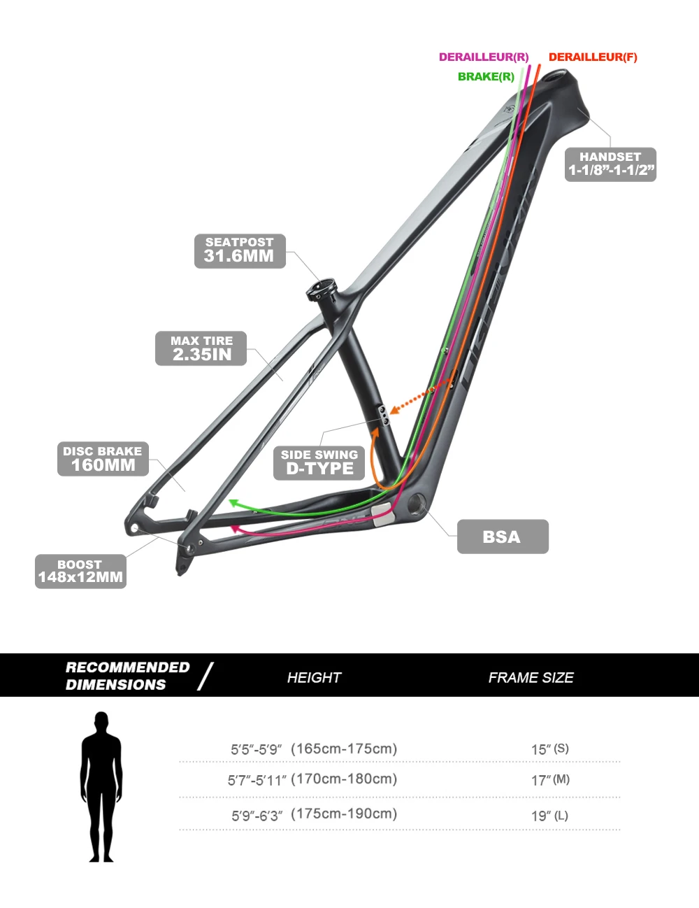 OG-EVKIN CF-054 MTB 12 В карбоновая рама для горного велосипеда 12X148 через ось 29er BSA73 1-1/8-1-1/2 велосипедная Рама из углеродного волокна