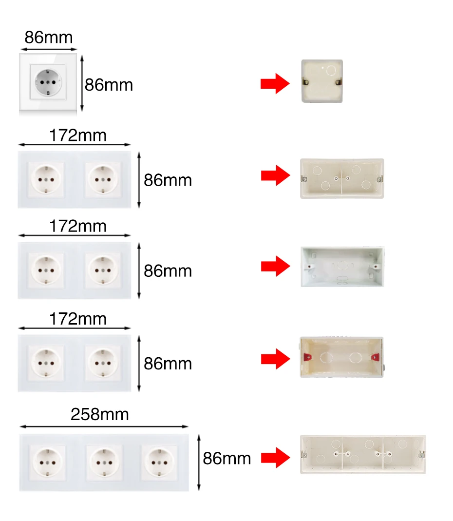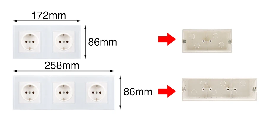 Белый цвет, пластиковые материалы из поликарбоната подходят для установки нижней коробки с гнездом 172*86/258*86 мм