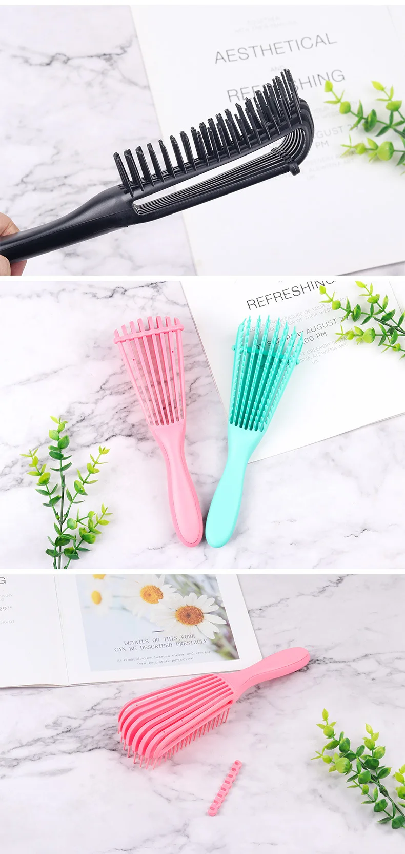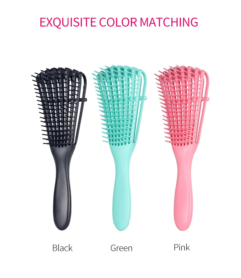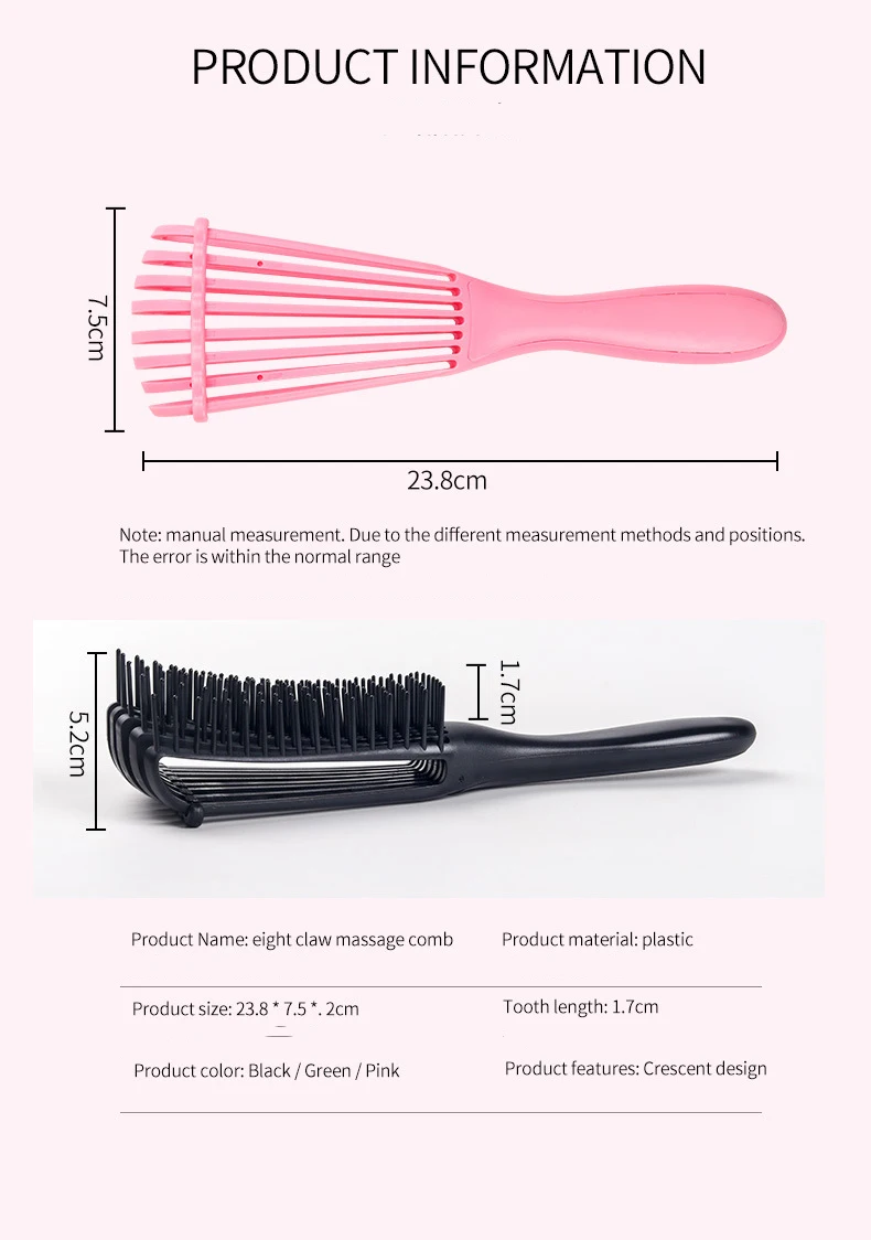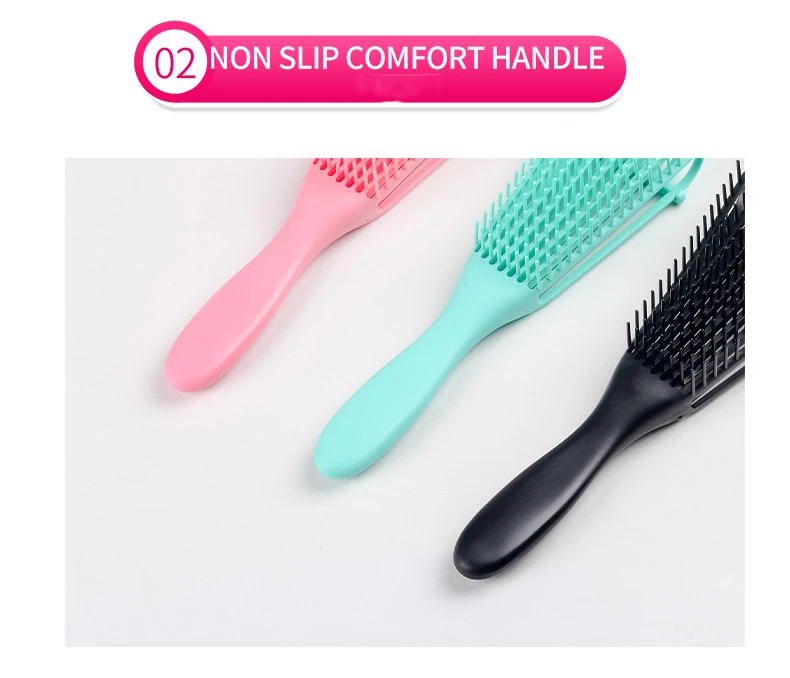 Характерная черта 1. подходит для волос различной текстуры, таких как кудрявые, волнистые, вьющиеся, влажные, сухие, густые или спутанные волосы 2. Интимный дизайн: расческа для распутывания волос со съемным держателем для фиксации и растягивания щетины. 3. С эфэктомом массажа: можно носить как можно быстрее.