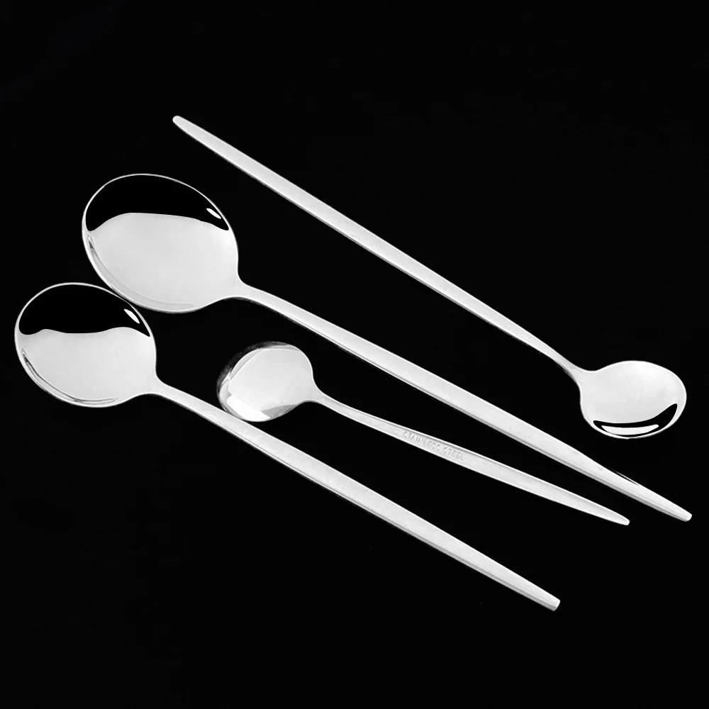 Столовый нож, десертный нож, обеденная ложка, вилка, Десертная Вилка для салата, десертная ложка, ложка для мороженого, чайная ложка. Высококачественный материал из нержавеющей стали для более длительного использования.