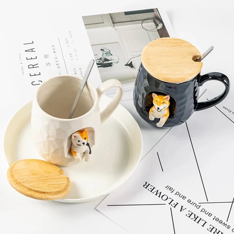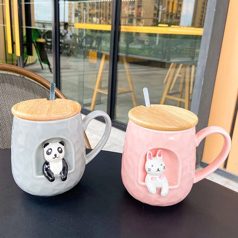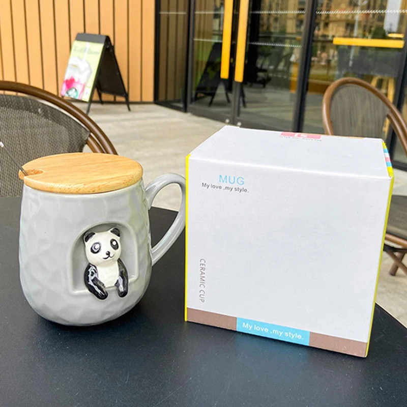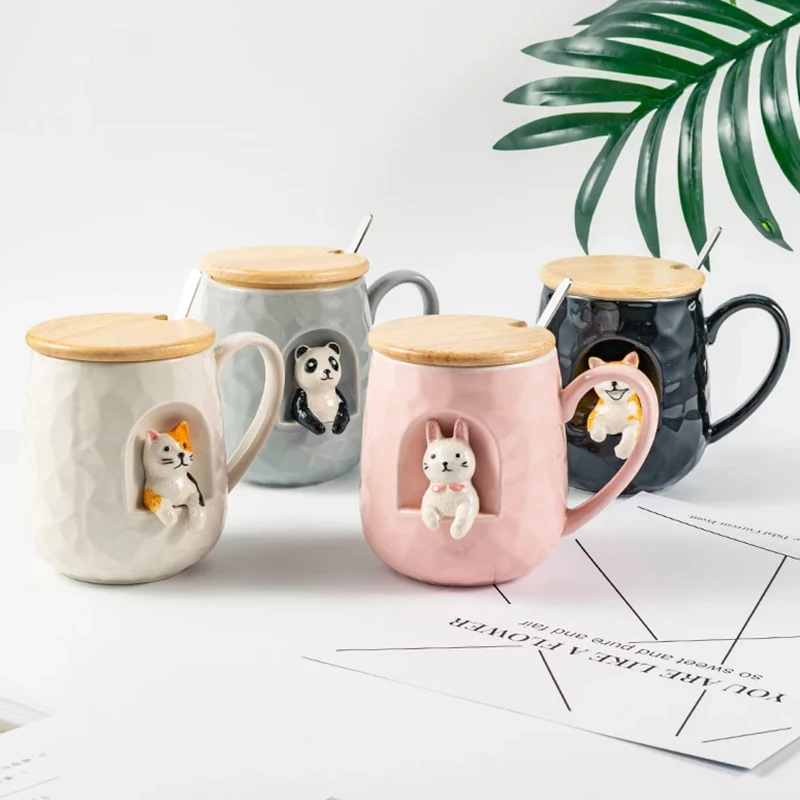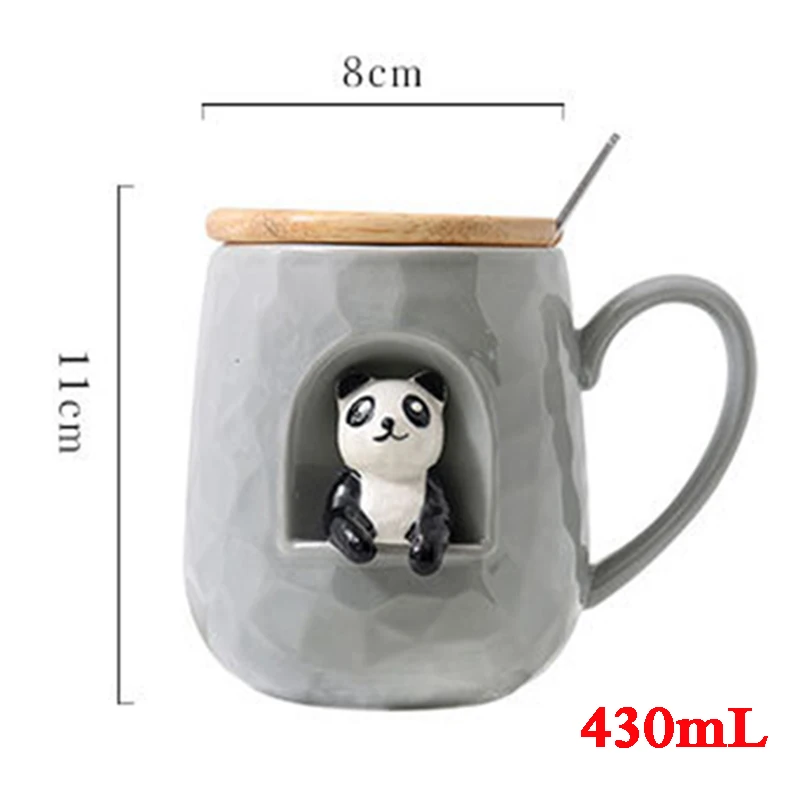 Стиль: милая рельефная кружка с животными с крышкой и металлической ложкой