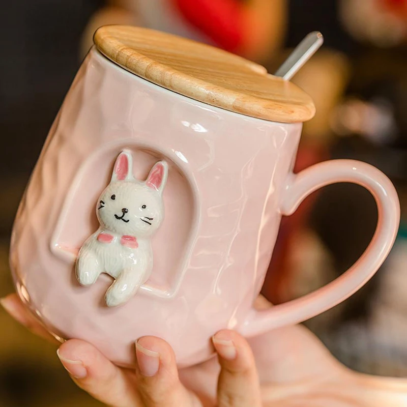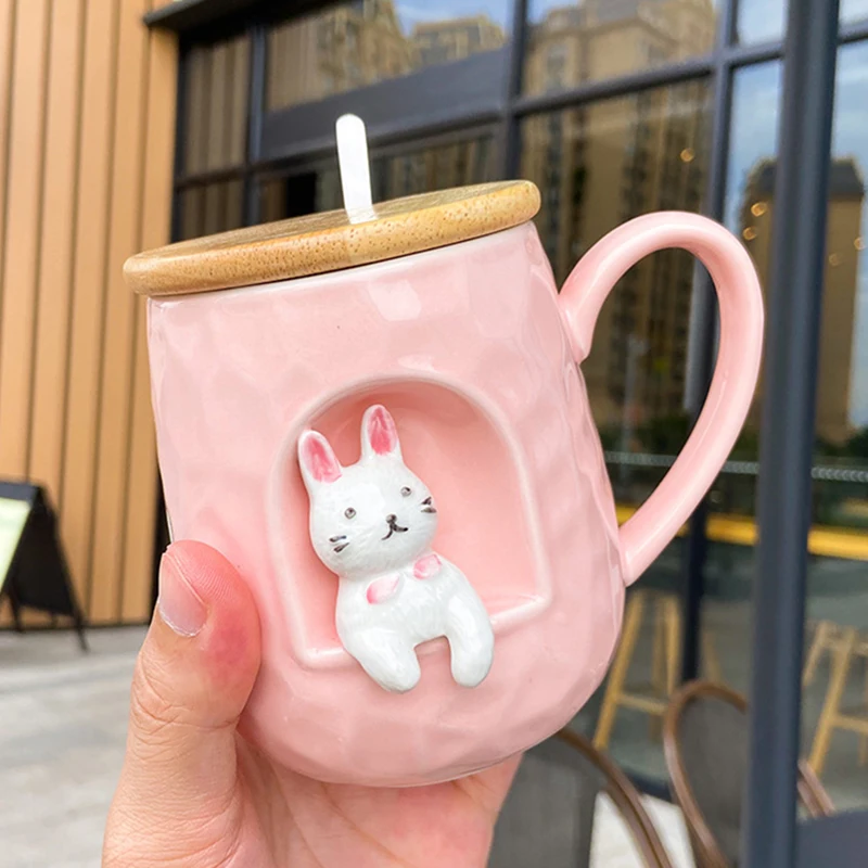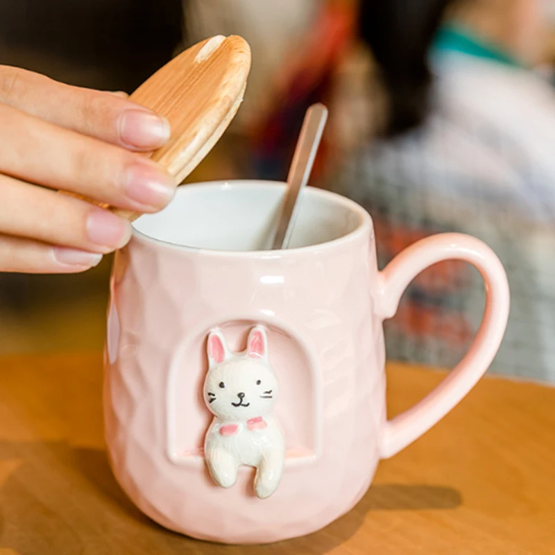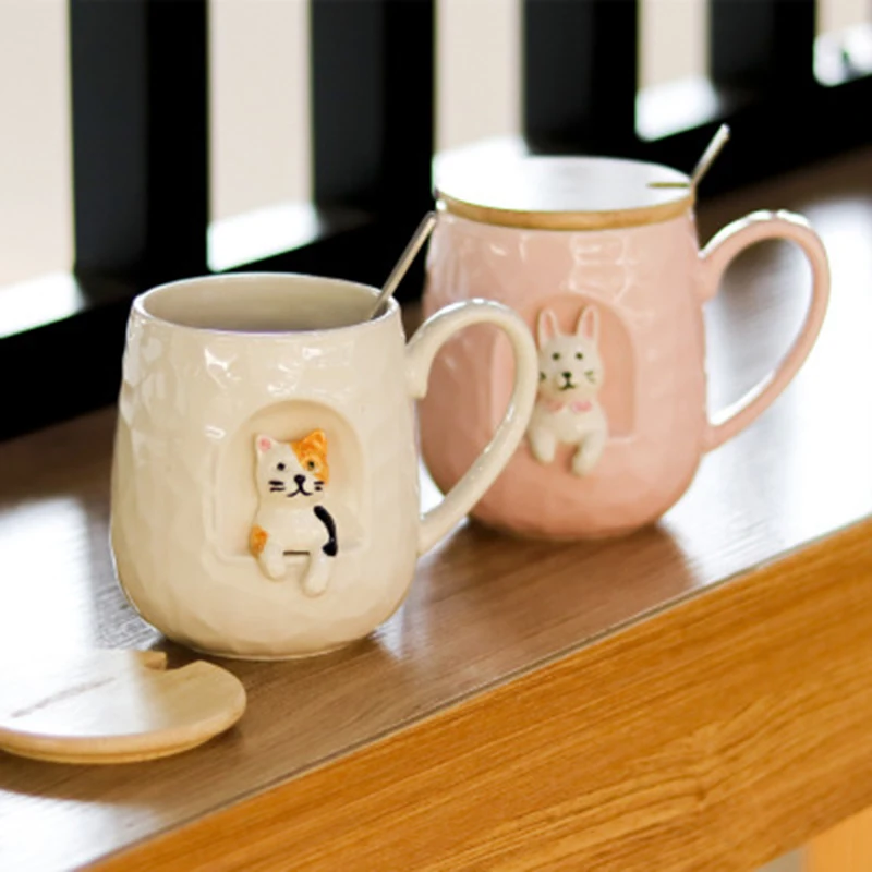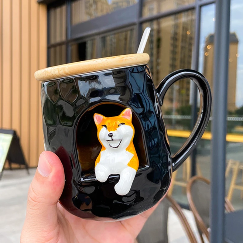 Стиль: милая рельефная кружка с животными с крышкой и металлической ложкой