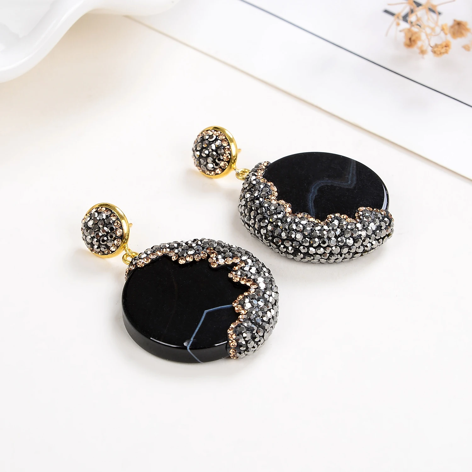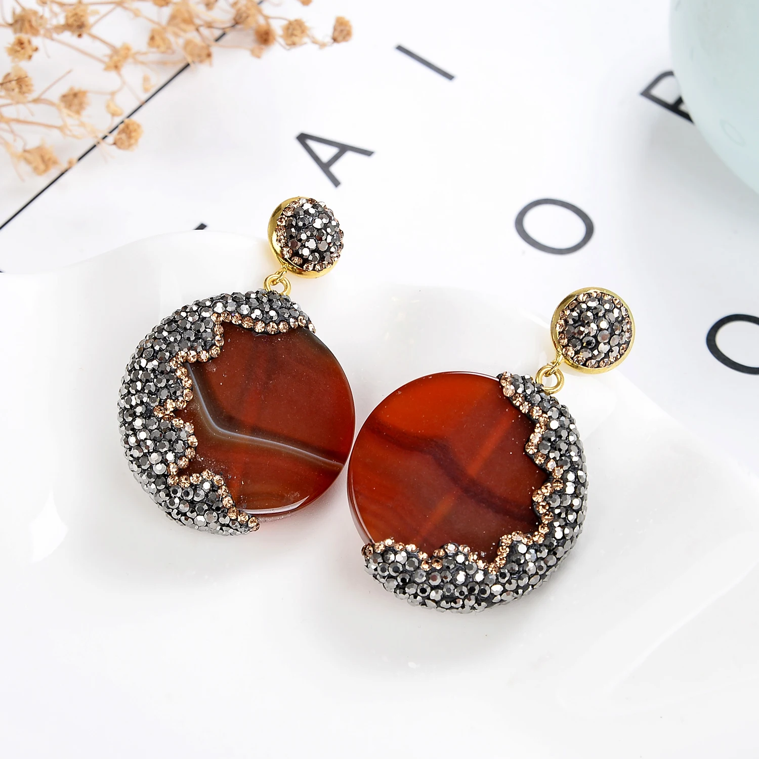 Женские длинные серьги ручной работы с круглыми камнями, модные роскошные массивные серьги-стразы, ювелирные аксессуары, 2020
