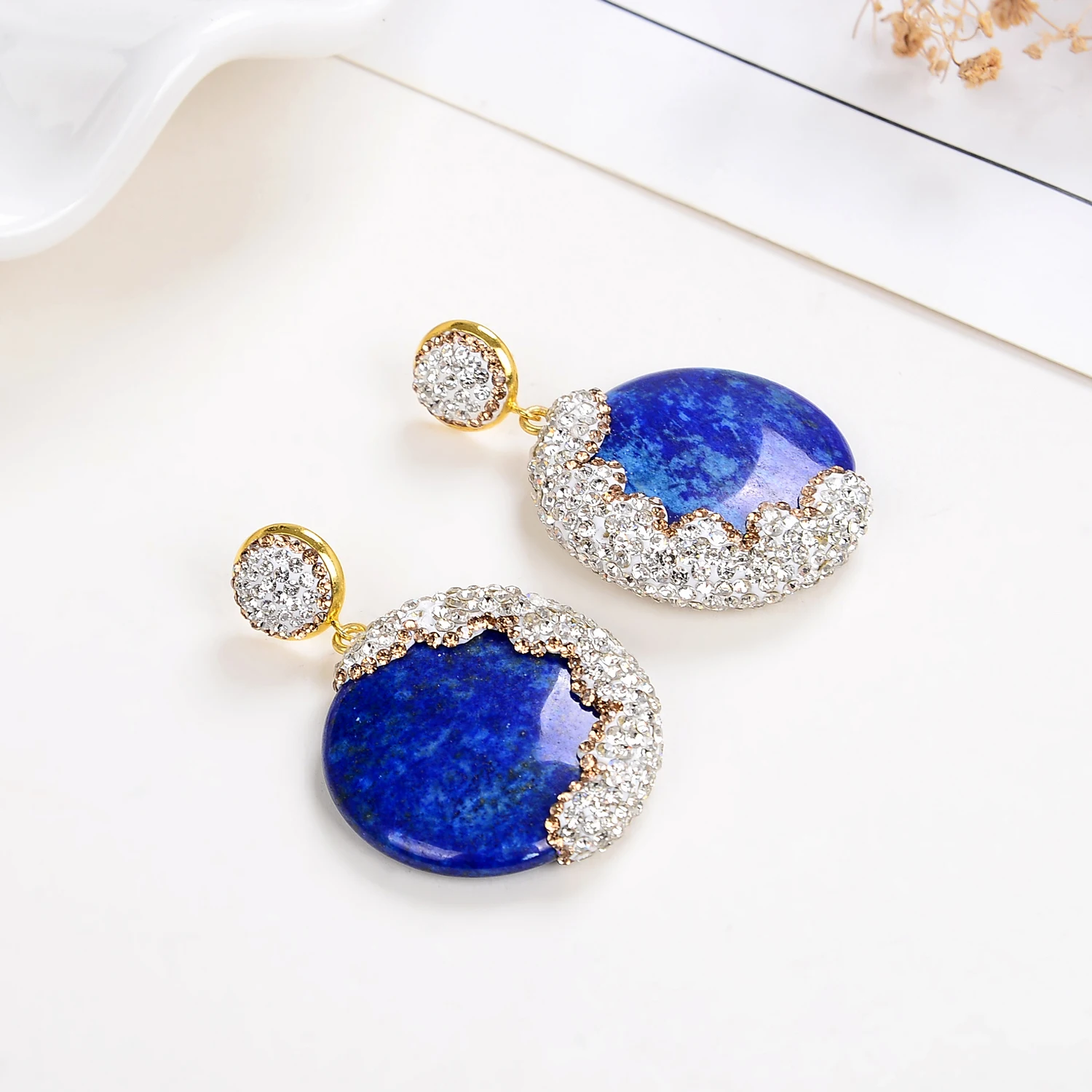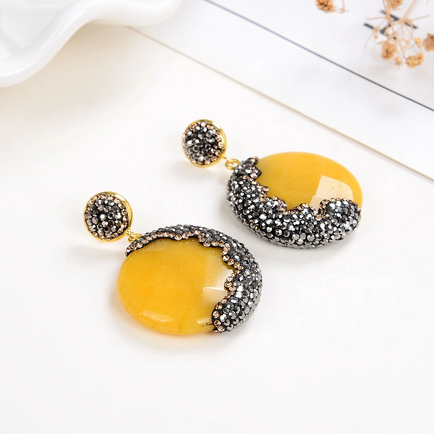 Стиль серег: серьги ручной работы Материал: натуральный камень + металл + стразы Стиль Камня: серьги из натурального камня Примечание: поскольку камень натуральный, цвет узора сережек в каждой команде будет отличаться