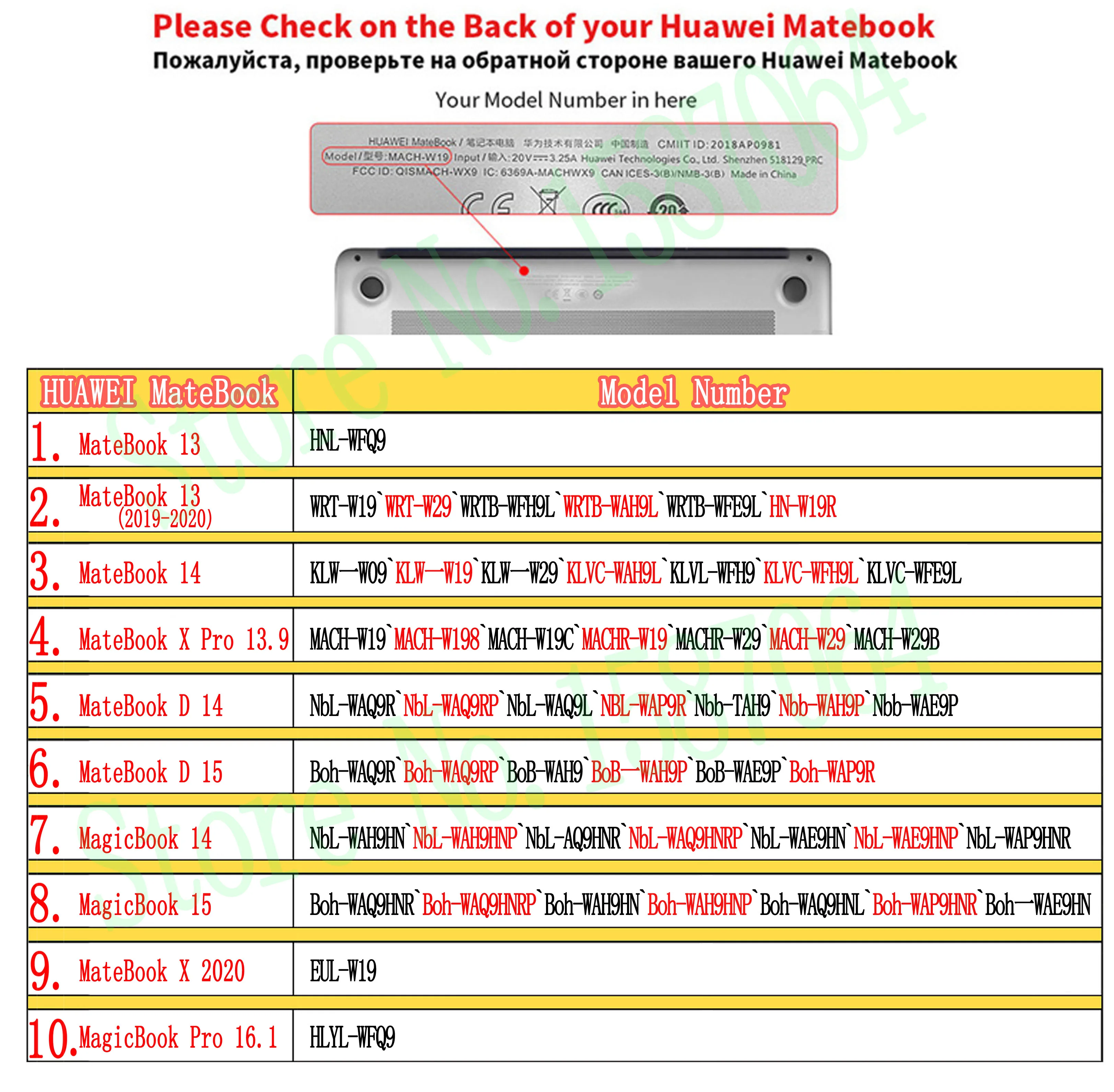Спасибо за заказ, мой друг Здравствуйте там Обратите внимание: для моделей ноутбуков Huawei обратите внимание 1: Найдите свою конкретную модель на задней части ноутбука Данная модель подходит для: Для Huawei Mate book 13: WRT-W19 WRT-W29 Для Huawei Mate book 14: KLW-W19 KLW-W29 Для нового MateBook D 14 : Nbl-WAQ9RP Nbl-WAQ9L NBL-WAQ9R Для MateBook D 15 : Boh-WAQ9R Boh-WAQ9RP Для MagicBook 14 : Nbl-WAQ9HNRP Nbl-WAQ9HNR Nbl-WAP9HNR Для MagicBook 15 : Boh-WAQ9HNRP Boh-WAQ9HNL Bohr-WAP9AHNR-WAQ9HNR Для Huawei Mate book Xpro: MACH-W19 MACH-W19C MACH-W29 2: выберите правильный товар. 3: Если вы ничего не понимаете, пожалуйста, свяжитесь с нами 4: мы можем помочь вам