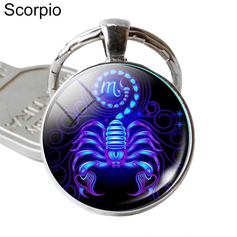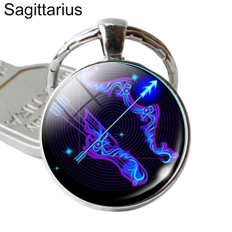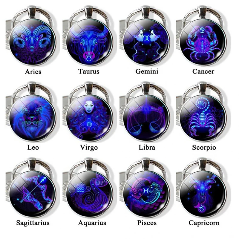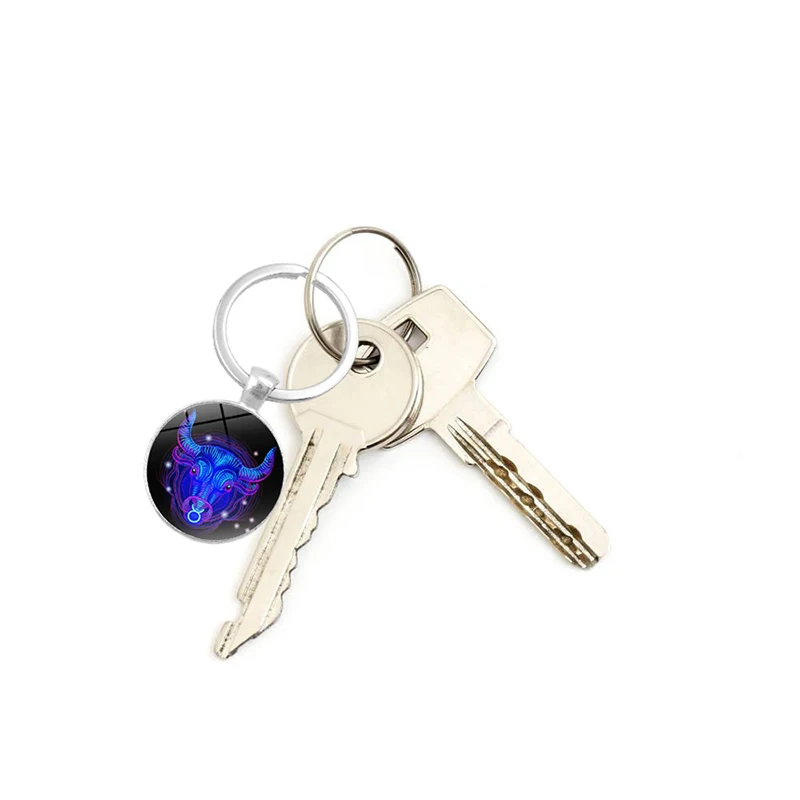 Особенности: держатель для ключей, 12 созвездий, подвесное украшение, Круглое стекло