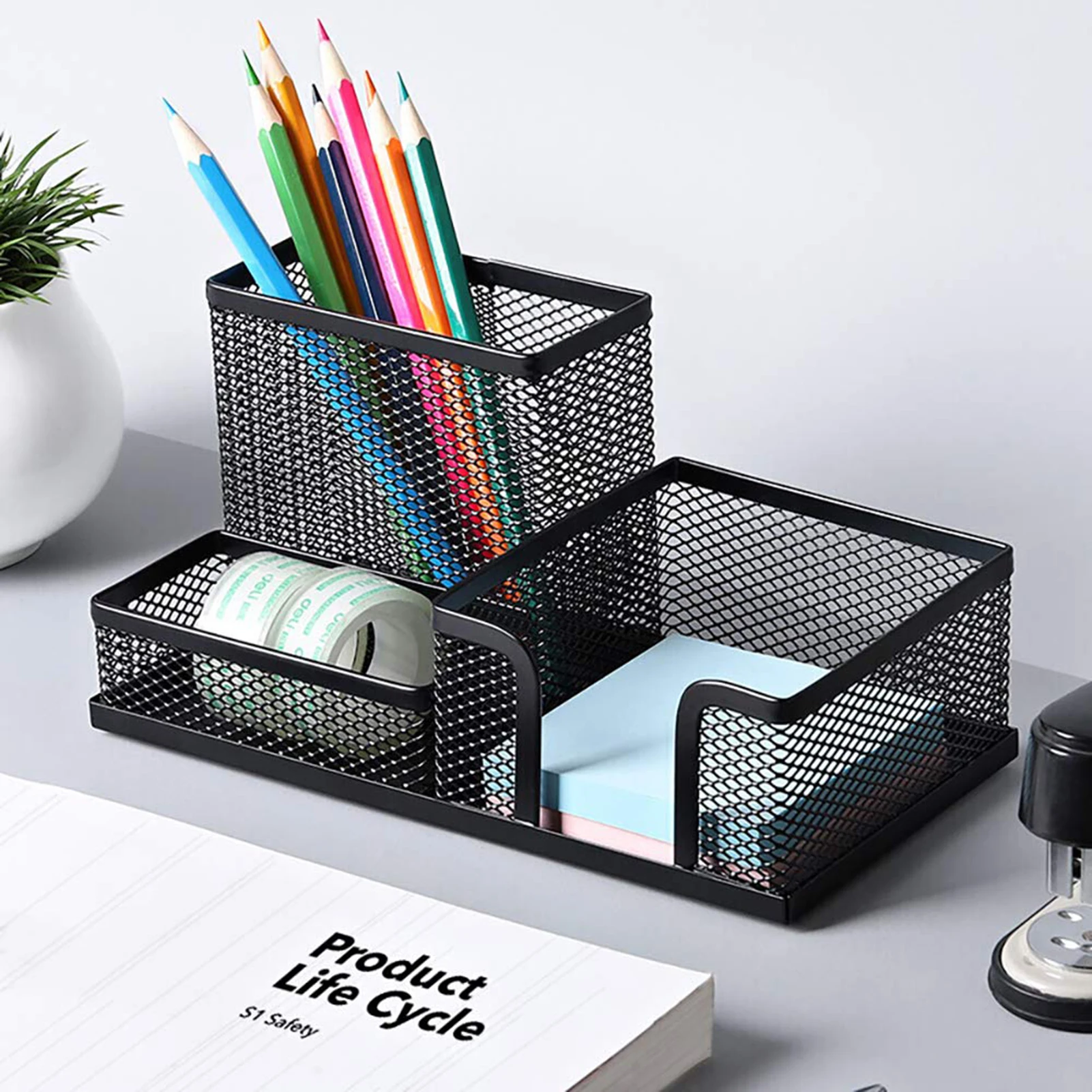Большой Вместительный сетчатый чехол для хранения с отверстиями, изготовленный из высококачественной стальной проволоки, стабильная техника плетения, гладкая обволакивающая кромка, в нижней части 4 Противоскользящие прокладки, сохраняет поверхность стола чистой и аккуратной.