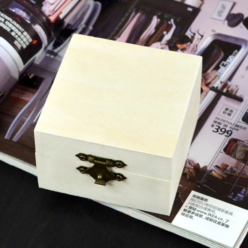 Квадратная Деревянная шкатулка для хранения ювелирных изделий с грязевым основанием художественный Декор «сделай сам» красивые деревянные поделки чехол для украшения игрушки запирающая застежка Органайзер DIY