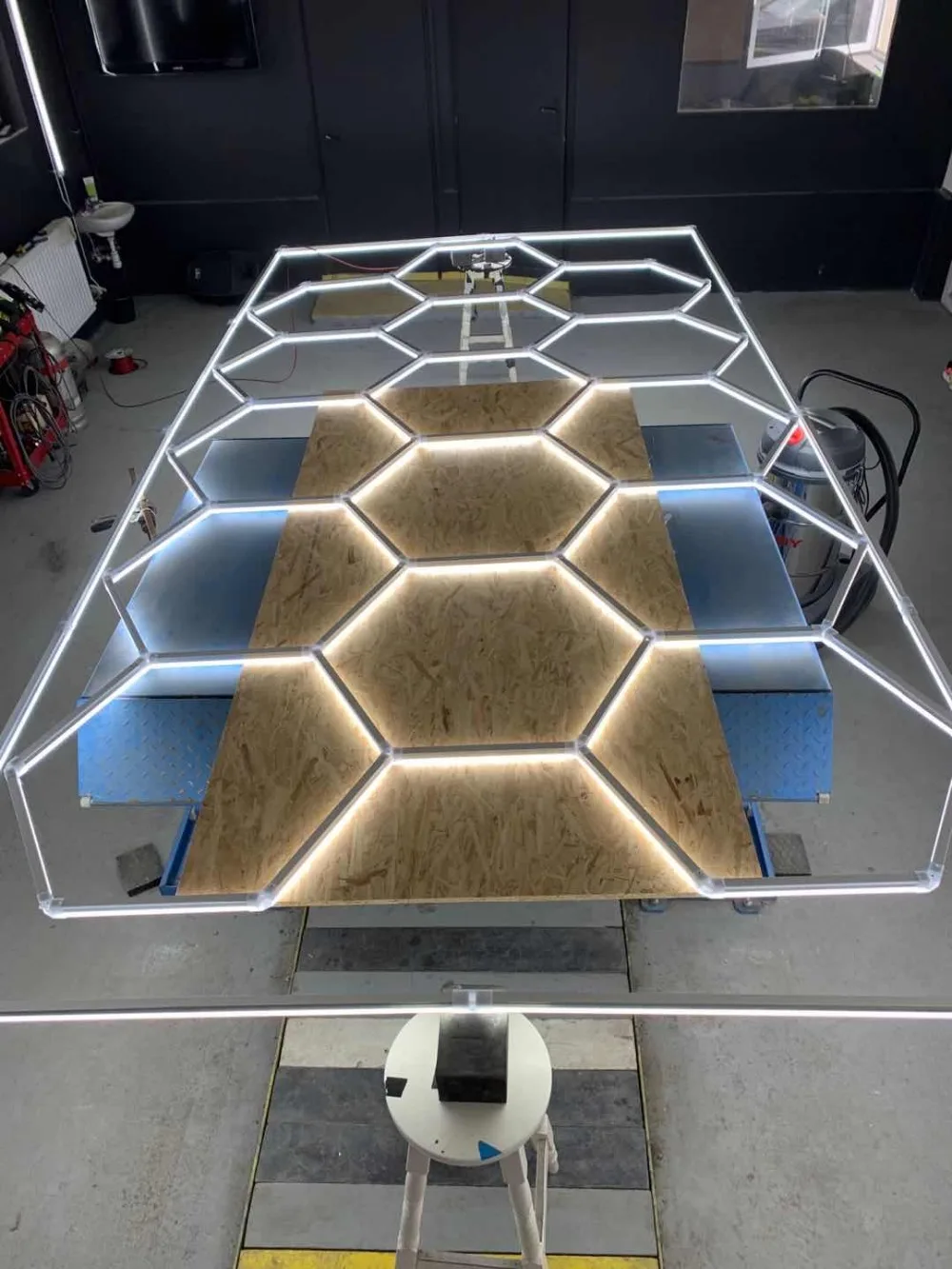 Материал корпусаДвухслойный алюминий, лучше для рассеивания тепла светодиодный светильник, и цвет отделки легко сочетается с разным украшением мастерской салона Мойки автомобиля.