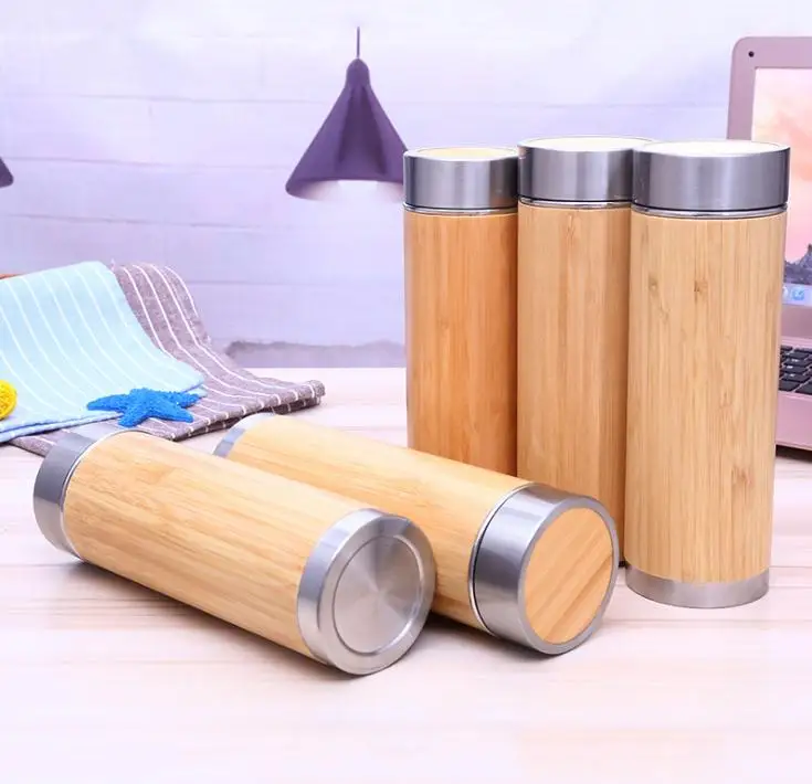 Бамбуковая нержавеющая сталь бутылка для воды с вакуумной изоляцией кофе путешествия Вакуумная чашка с ситечком для заварки чая оптовая продажа