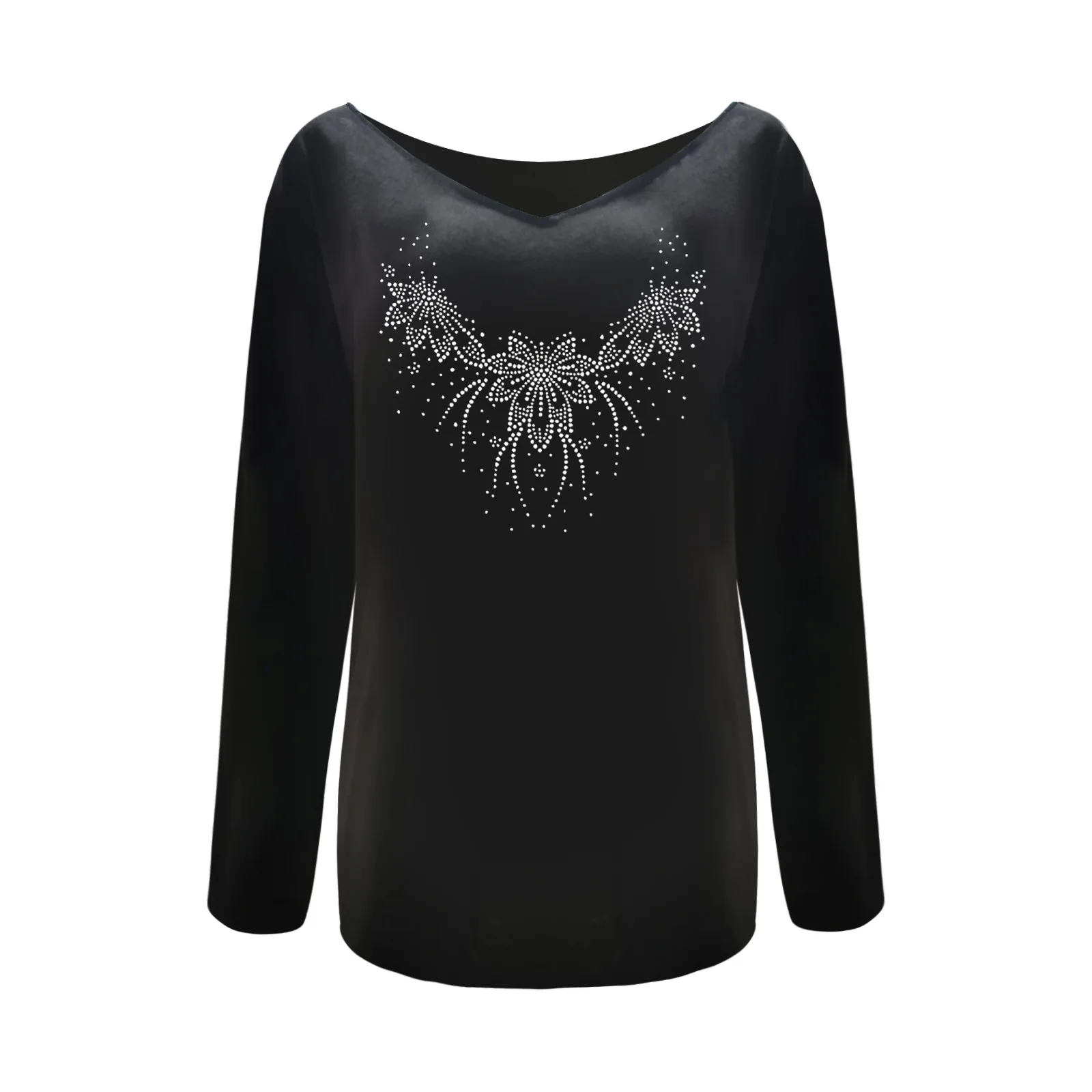 Модный женский пуловер с длинными рукавами и кружевной вышивкой в виде бриллиантов