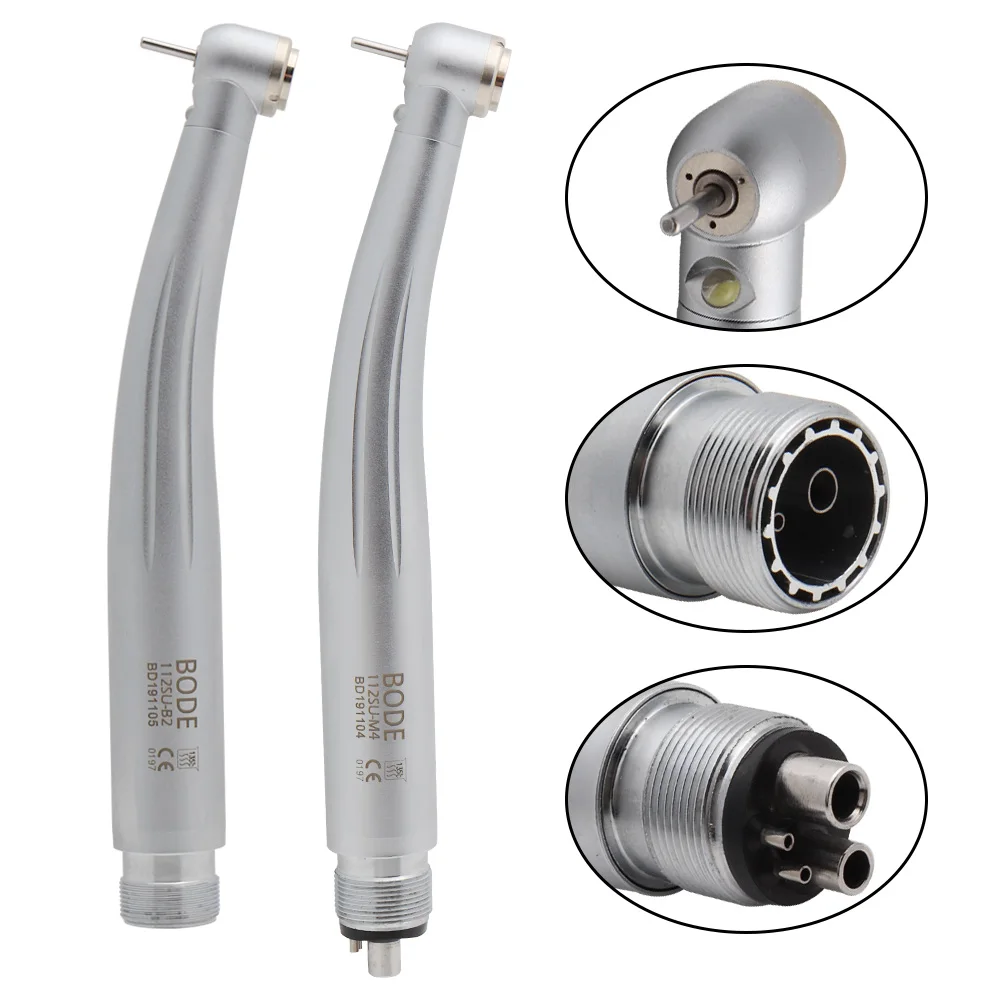 Особенности: 1. Светодиодный наконечник с автономным питанием 2. Тройной распылитель воды с воздушной турбиной 3. Подходят высокоскоростные Алмазные Боры 4. Оригинальный бренд BODE 5. Борден/Средний Запад 2/4 отверстия B2/M4