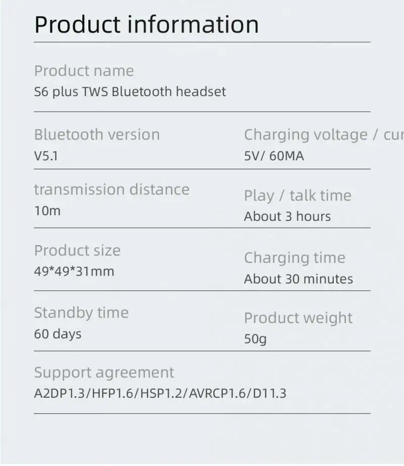 Charging box battery capacity: 260mAh