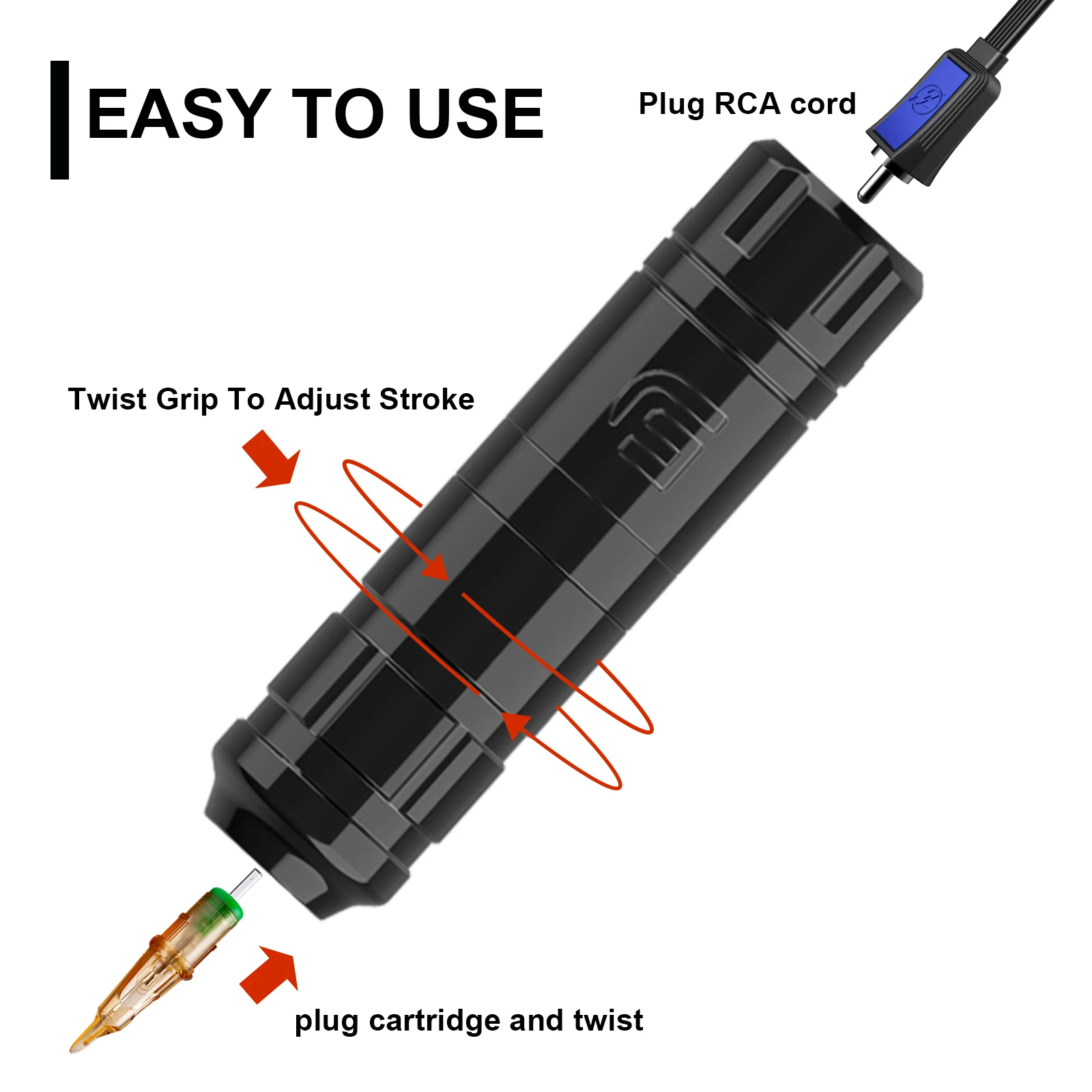 Совместим с большинством картриджей в тату-индустрии.
