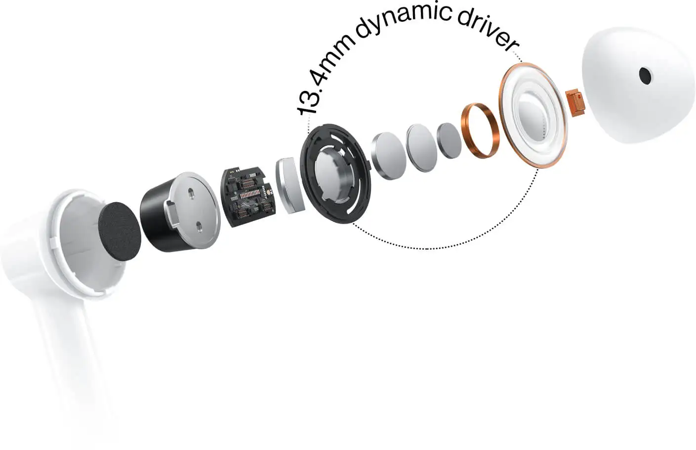 OnePlus Buds имеет тот же CD-узор, который вдохновлен ракушками, что и беспроводная серия OnePlus buttles, для мгновенно узнаваемого дизайна OnePlus.