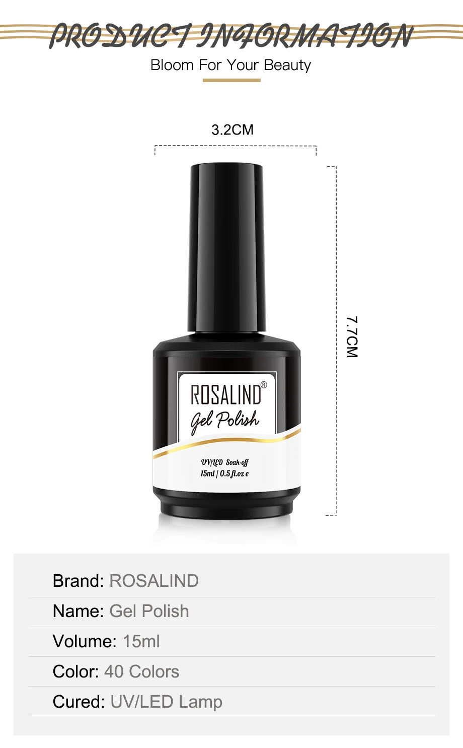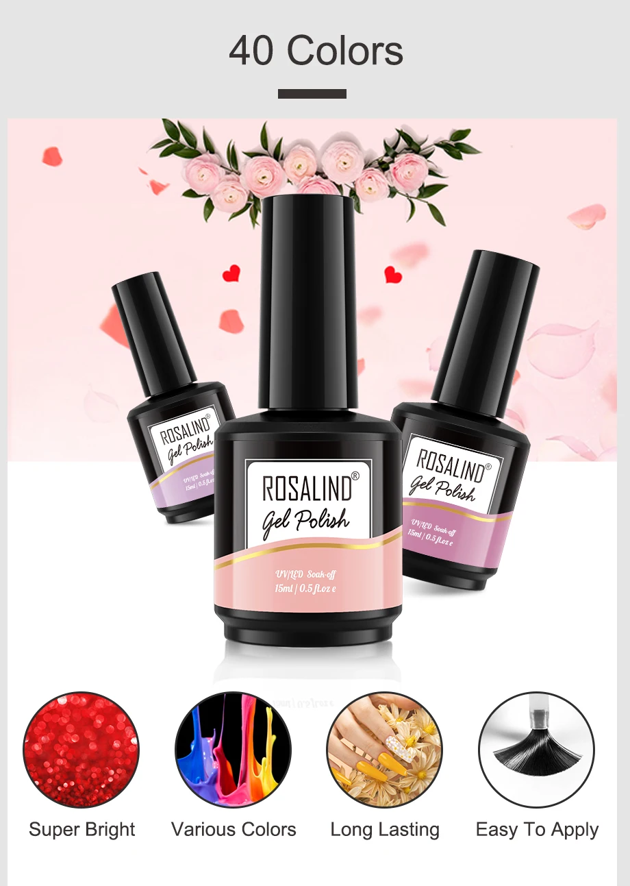 ROSALIND 40 цветов 15 мл отмачиваемый Гель-лак яркий для дизайна ногтей светодиодный/УФ-лампа