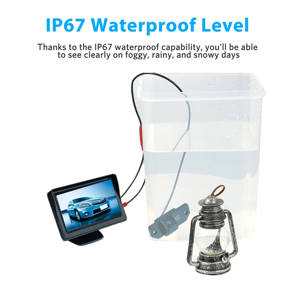 Водонепроницаемость IP67, не беспокойтесь о том, чтобы вернуть ваш автомобиль даже в дождливый день. Эта камера также устойчива к ударам, что обеспечивает лучшую производительность и гарантирует безопасное вождение.