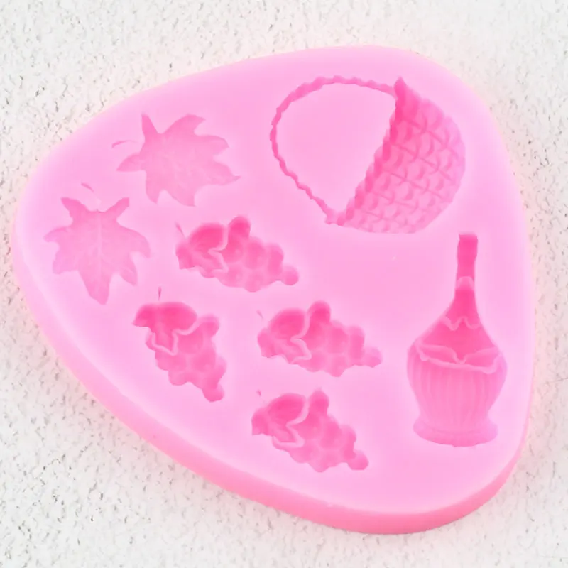 Grape Leaves Silicone Mold DIY Basket Wine Bottle Cupcake Topper Fondant Cake Decorating Tools Candy Resin Clay Chocolate Moulds