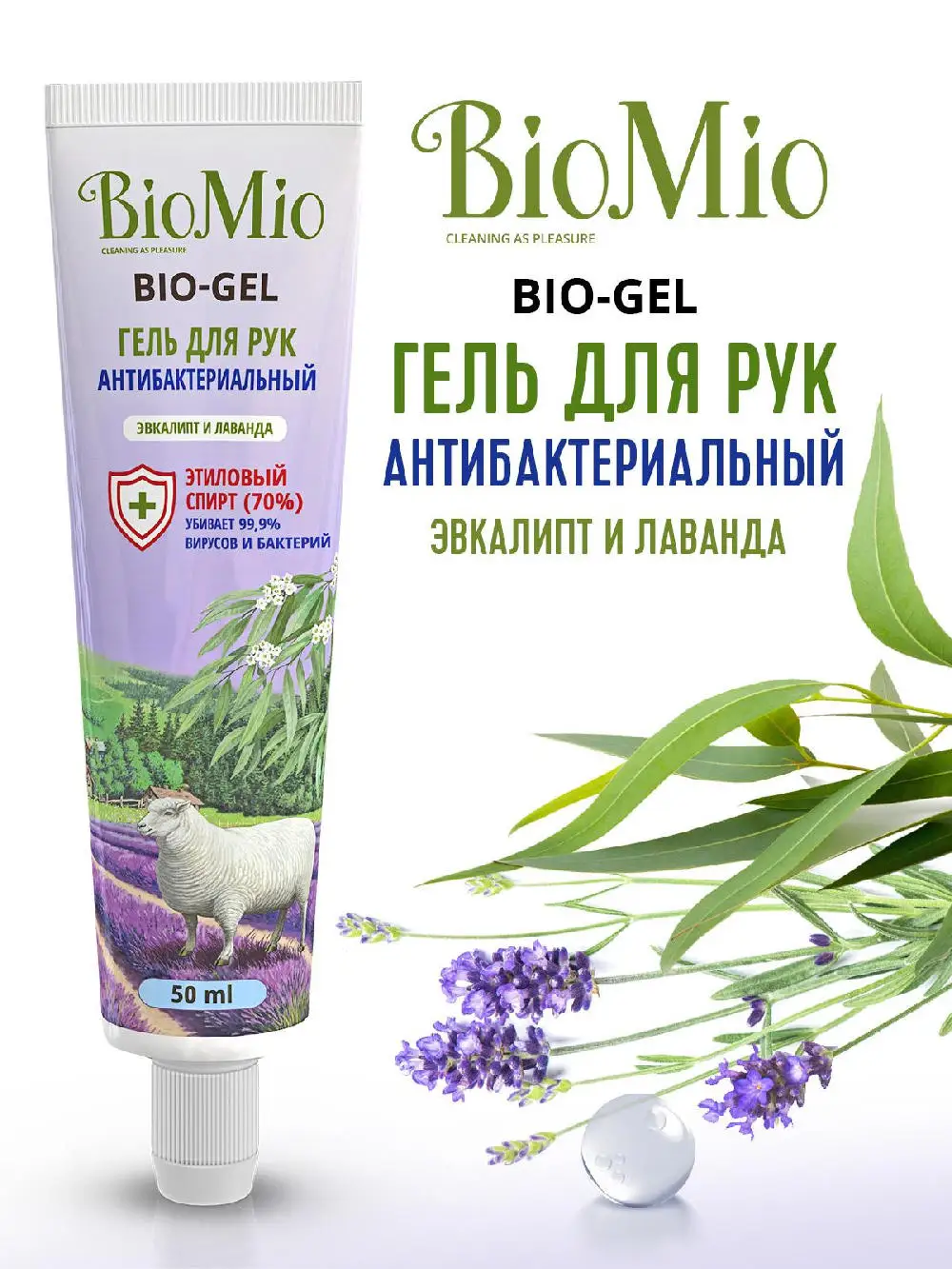 Антибактериальный гель для рук BIO-GEL с эфирным маслом эвкалипта и лаванды — эффективная противовирусная защита.
