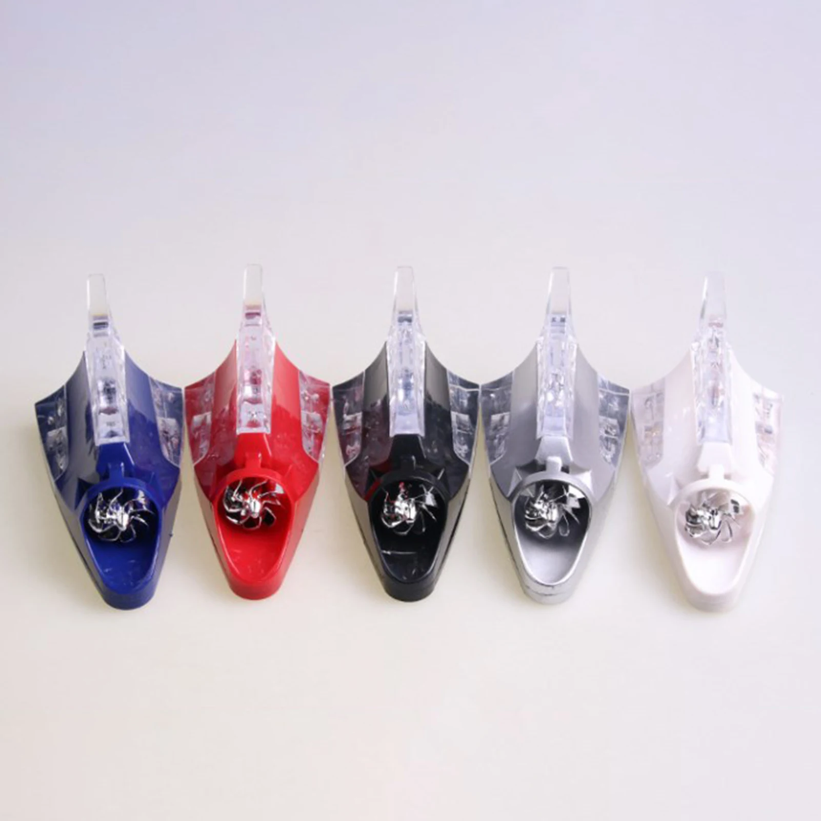 Светодиодная цветная ветровая Антенна изготовлена из прозрачной пластиковой коробки, гальванического пластикового основания, переднего пластикового лопасти вентилятора и внутренней металлической катушки.