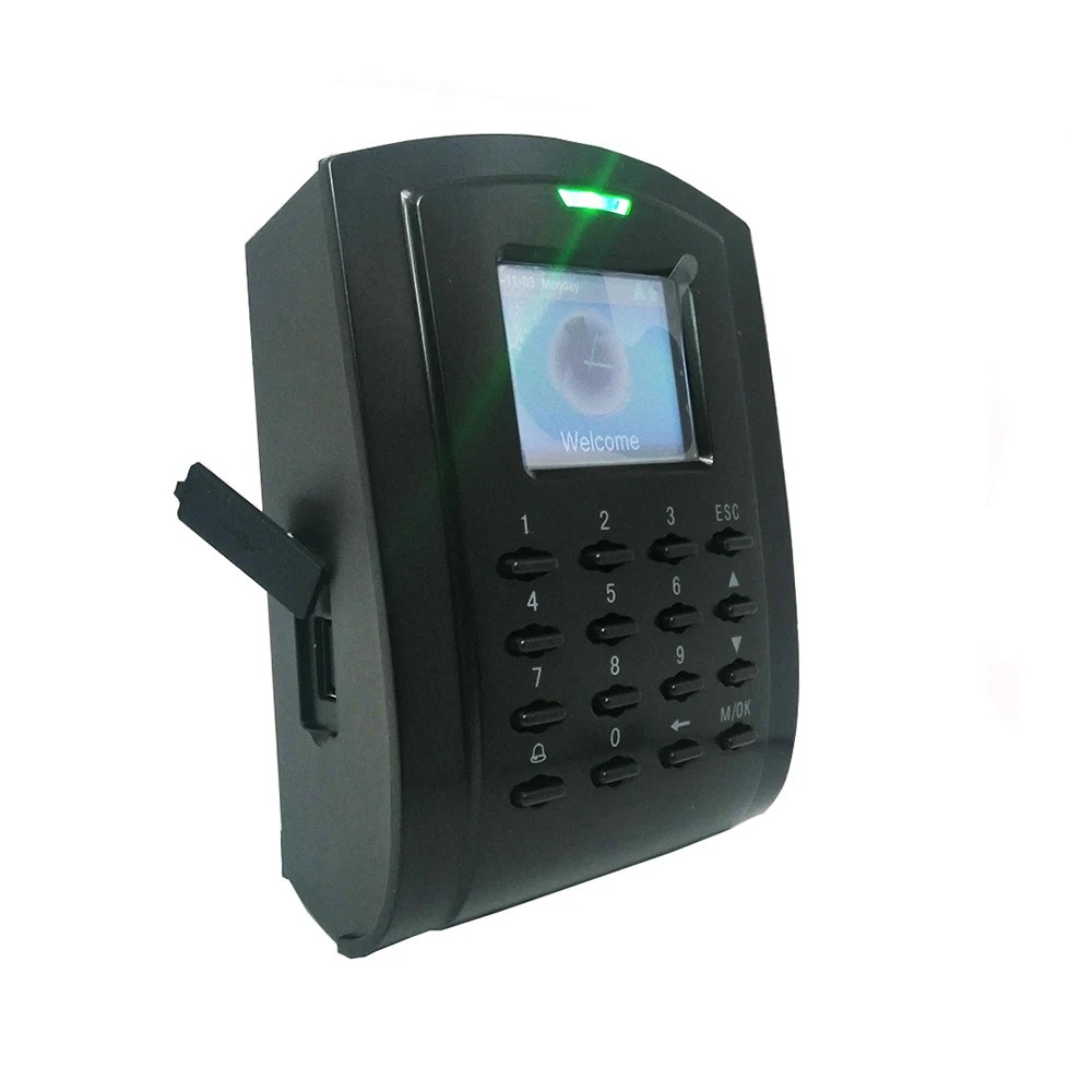 Card Capacity:30,000 Transaction Capacity:80,000 Communication:TCP/IP, RS485, USB-Host Interface for Access Control:3rd party electric lock, door sensor, exit button, alarm, doorbell Auxiliary Interface:1ea for linkage function Wiegand Signal:Output & Input Standard Functions:Anti-passback Optional Functions:IC,Print Function Display:2.0 inch TFT LCD Color Screen Power Requirement:DC 12V Operating Temperature:0°C ~ 45°C Operating Humidity:20% ~ 80% Dimension(L×W×H):130mm×94mm×52mm SDK:Standalone SDK Software: 3.5 Version