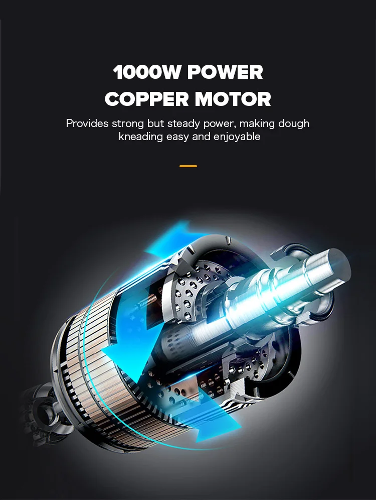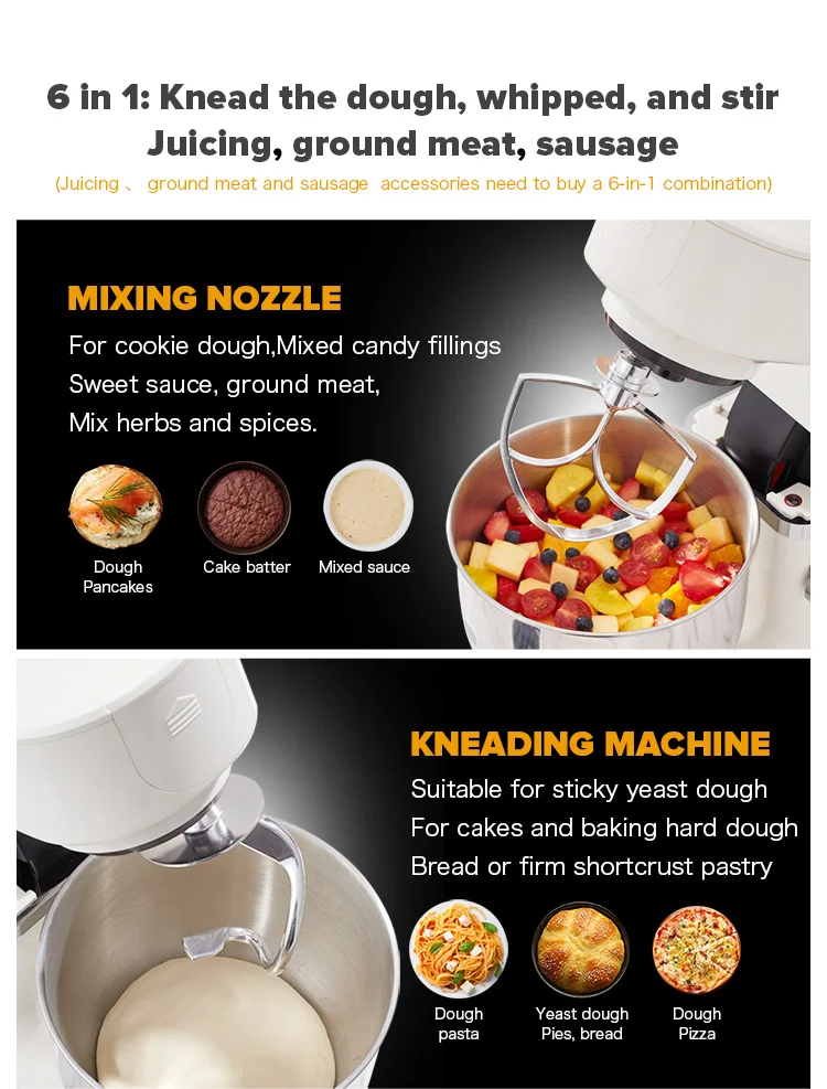 ● 10-минутный таймер с сигналом тревоги-Особенности цифровой дисплей для отображения времени и настройка скорости, автоматически отключается в тех случаях, когда время истекло. Позволяет завершить другую подготовительную работу во время разминания теста. Примечание: Пожалуйста, разминайте тесто на уровне 1-3 скорости, если смешивание на высокой скорости вызовет тряску машины и вызовет громкий шум.