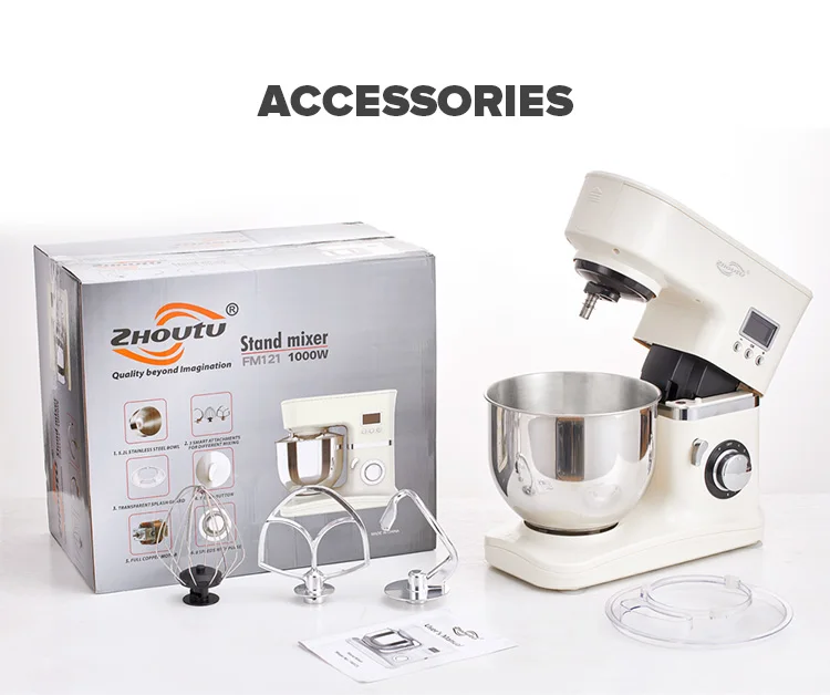 Посылка включает в себя: 1 чаша из нержавеющей стали, 1 плоская тарелка, 1 крючок для теста, 1 проволочный плит, 1 щит для заливки