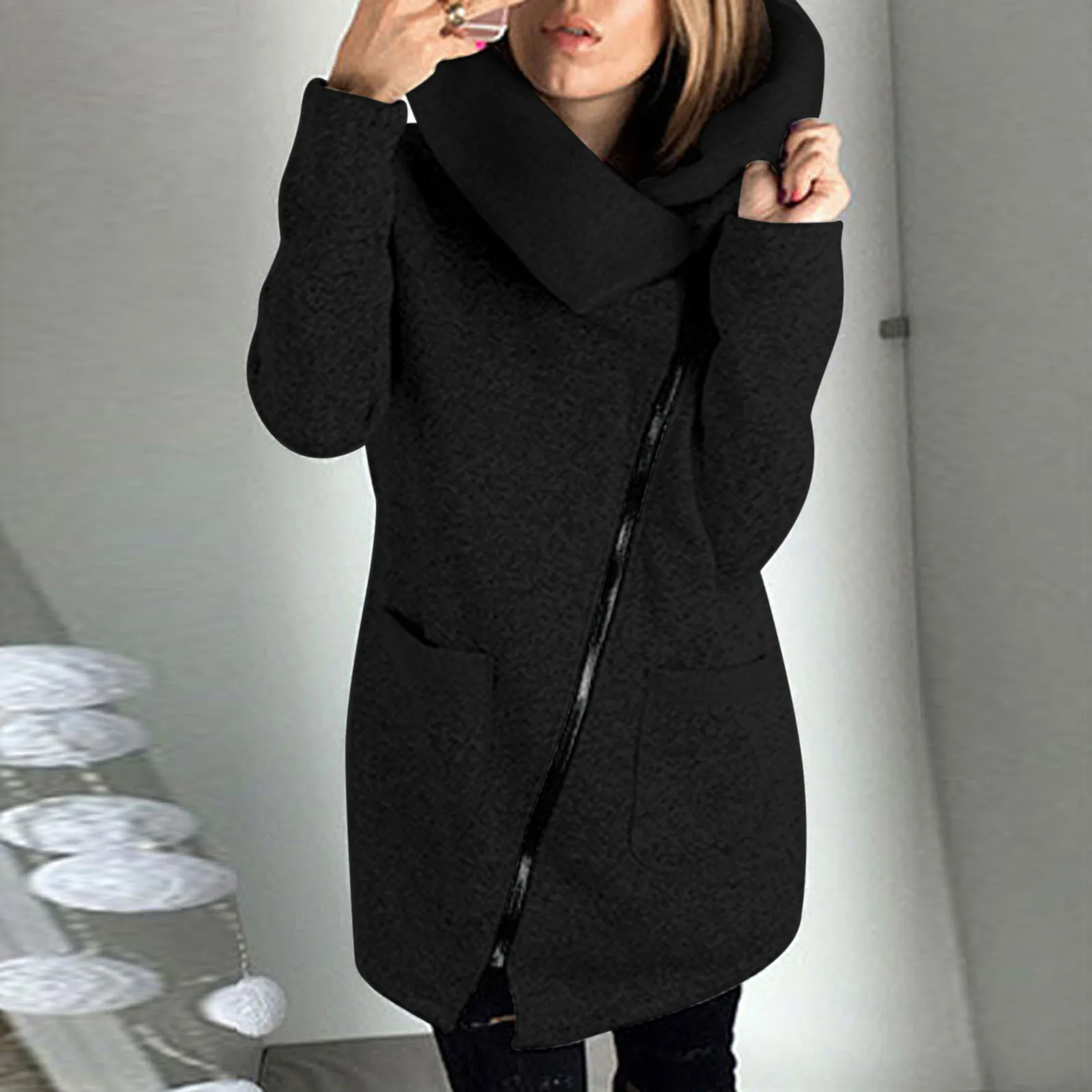 Женская Повседневная куртка с капюшоном, пальто, Длинная толстовка на молнии, верхняя одежда, топы