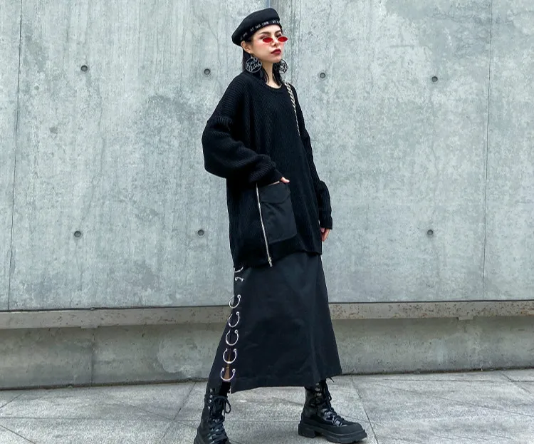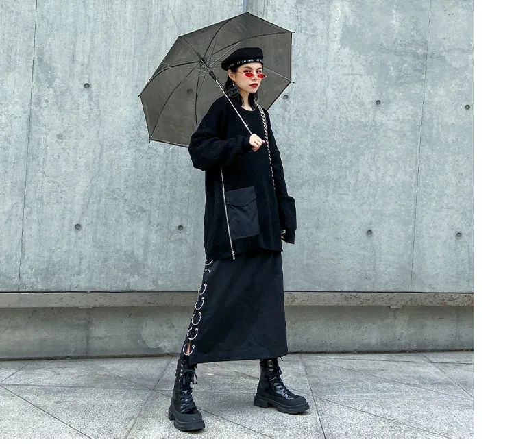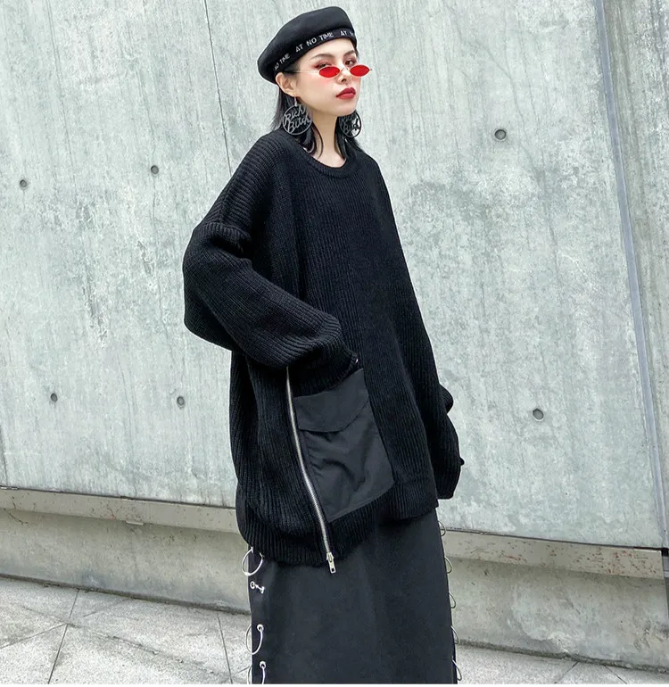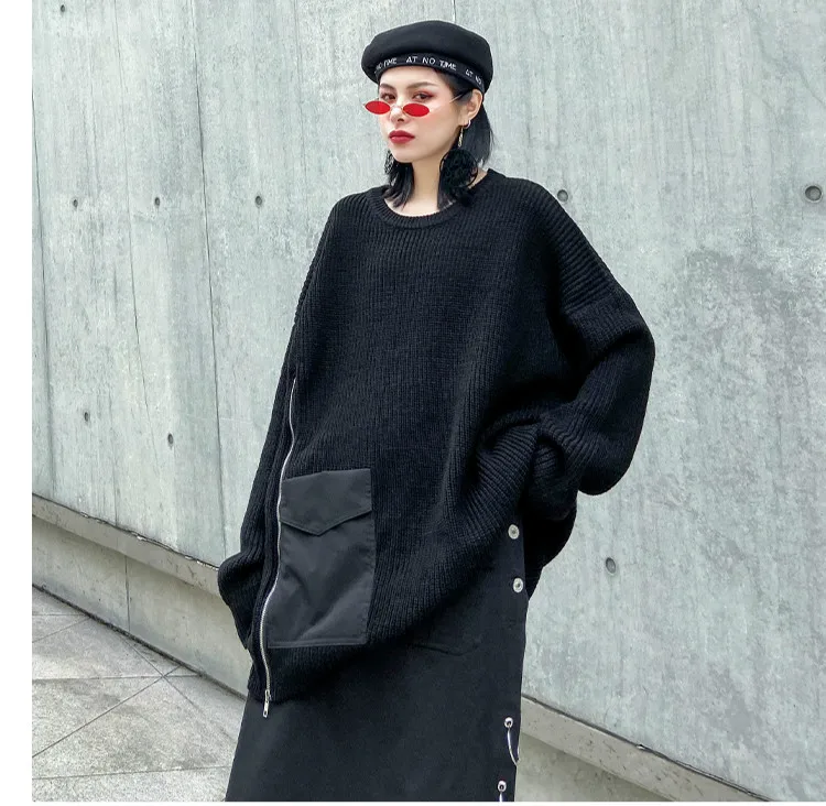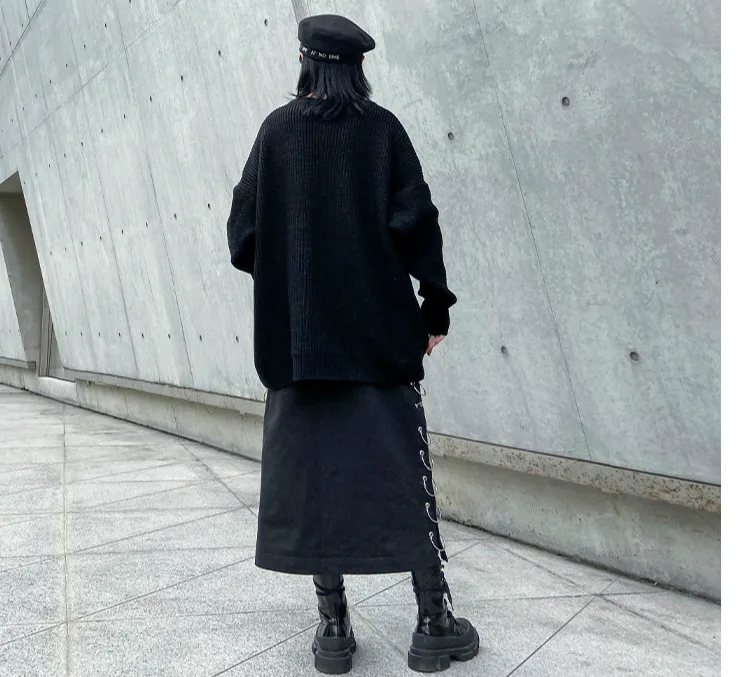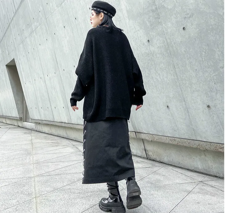 Европейские дизайнерские зимние винтажные панковские теплые вязаные свободные пуловеры оверсайз