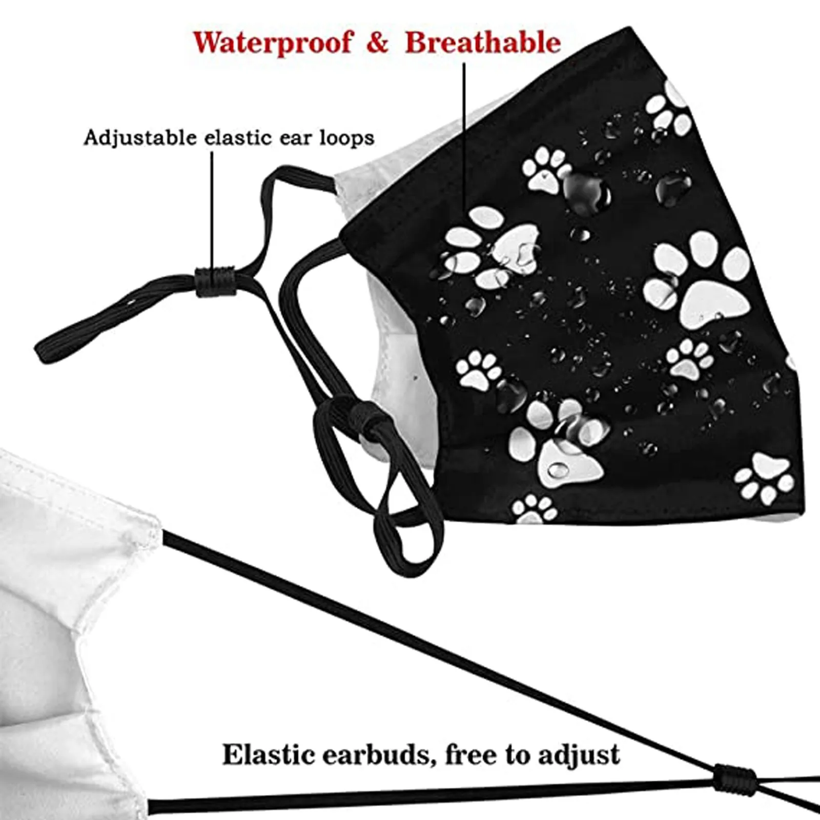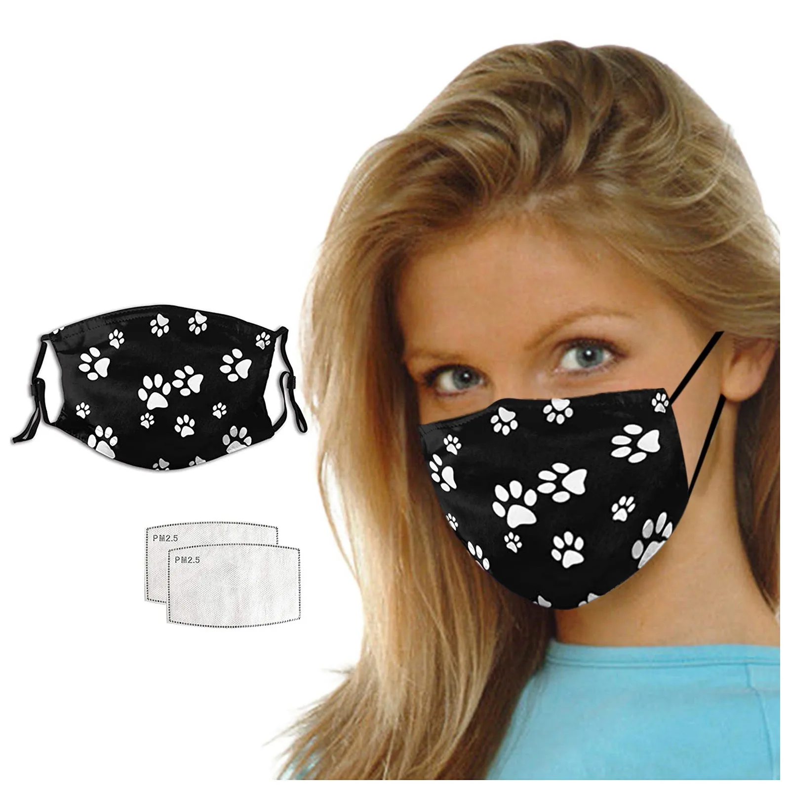 Маска для взрослых с принтом собачьей лапы, моющаяся многоразовая маска с защитой от пыли, Черная защитная Тканевая маска для рта