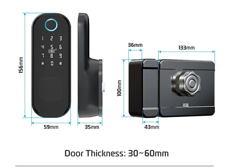 Longer Lifespan & More Reliable: Both the front and back panel of this Smart Digital Door Locks are made of Zinc Alloy, Anti-impact & suitable for harsh environments. ( Waterproof Level: IP65; Operating Temp Range: -20℃~50℃ )