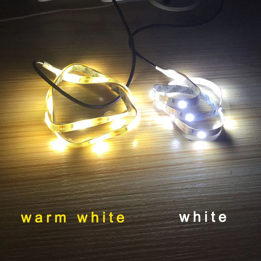 DC 5В USB светодиодный полосы светильник 5050 вечерние гибкий светодиодный полосы лампы ТВ фон теплый белый светильник ing Водонепроницаемый 50 см, 1 м, 2 м, 1,5 м