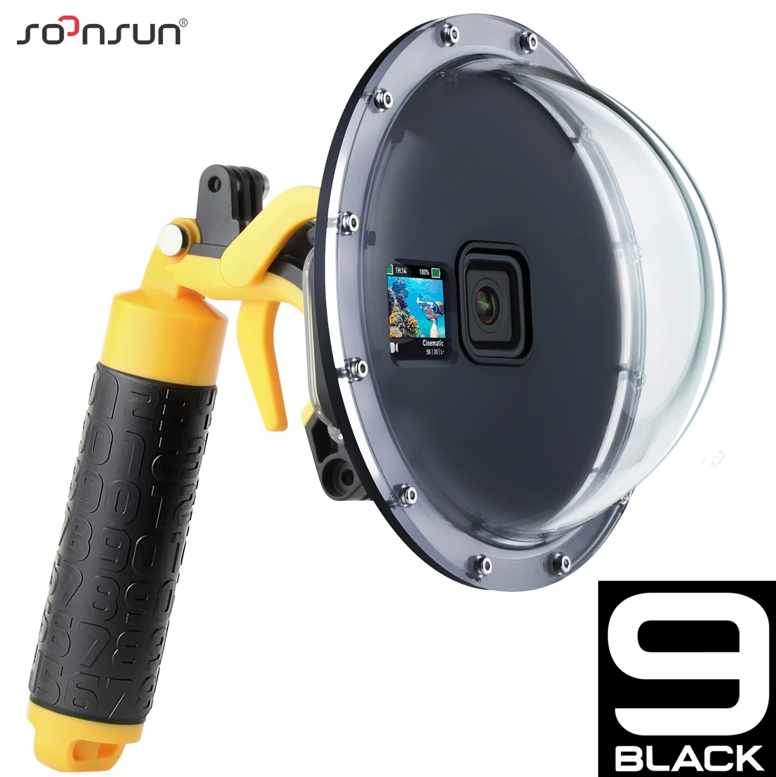 SOONSUN 45 м водонепроницаемый Дайвинг купол порт крышка объектива корпус Чехол ж/триггер Поплавковый захват для GoPro Hero 9 черный Go Pro 9 аксессуар