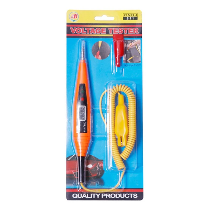 2.5-32V Spring Line Car Digital LCD Electric Voltage Tester Pen Probe Detector Tester With LED Light for Auto Car Testing Tool