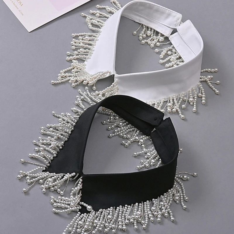 Ручная работа, имитация жемчуга, украшенная бусинами и кисточками, воротник белого/черного цвета на выбор.