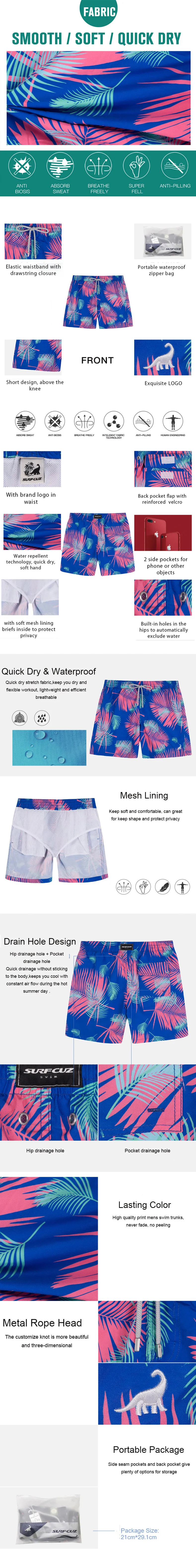 SURFCUZ быстросохнущие летние мужские пляжные шорты с сетчатой подкладкой и карманами